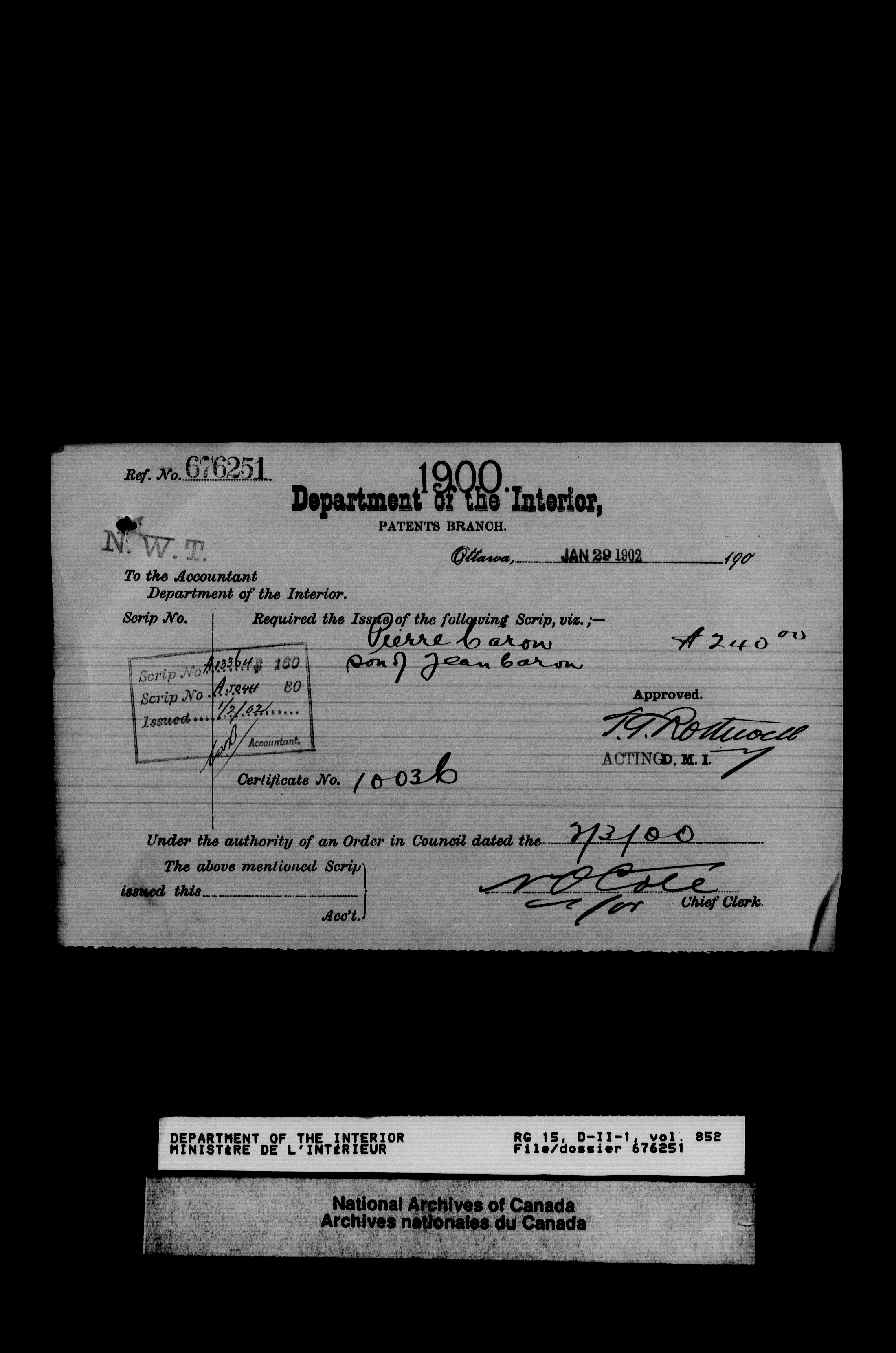 Dominion Lands Branch - Correspondence Files - 14472
