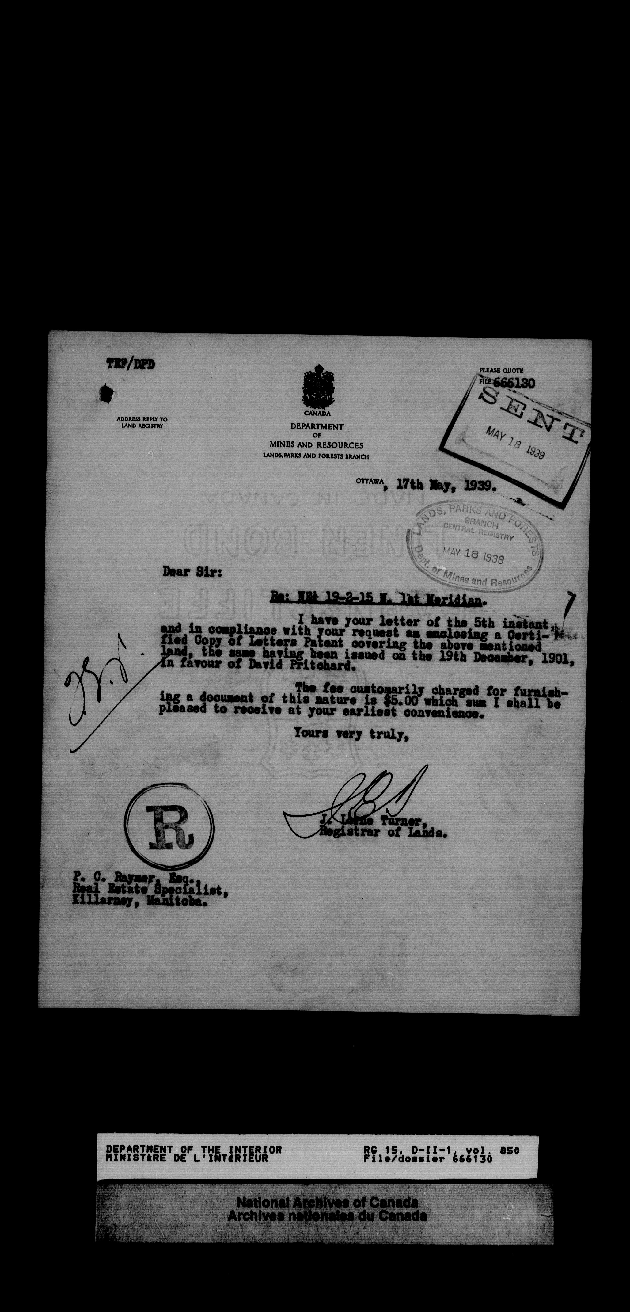 Dominion Lands Branch - Correspondence Files - 14472
