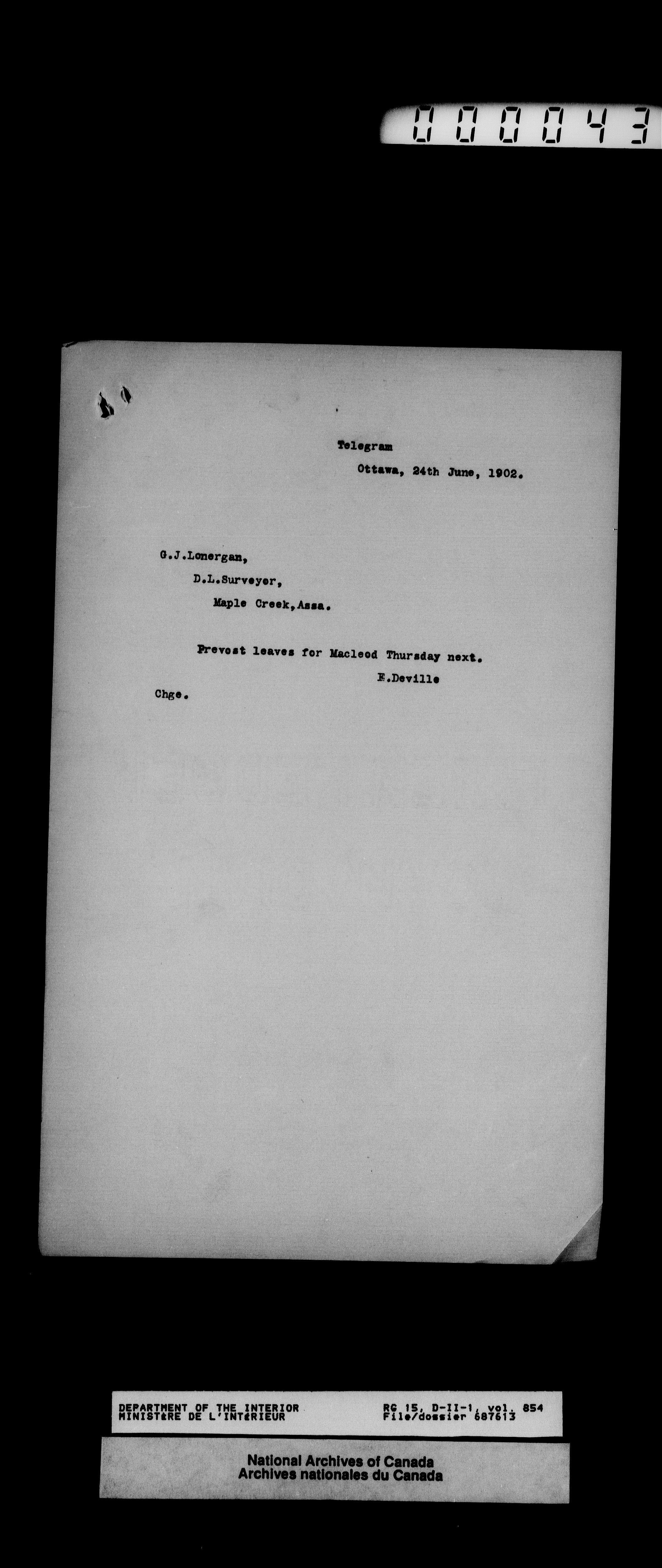 Dominion Lands Branch - Correspondence Files - 14475