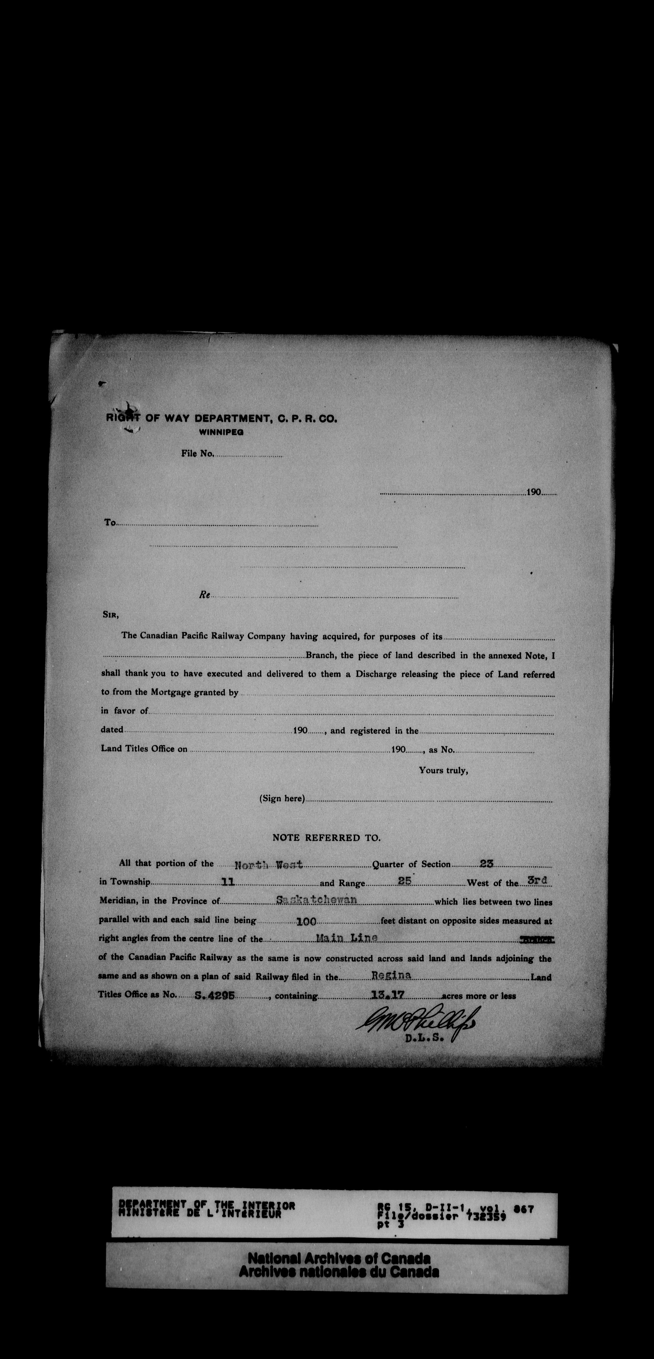 Dominion Lands Branch - Correspondence Files - 14486