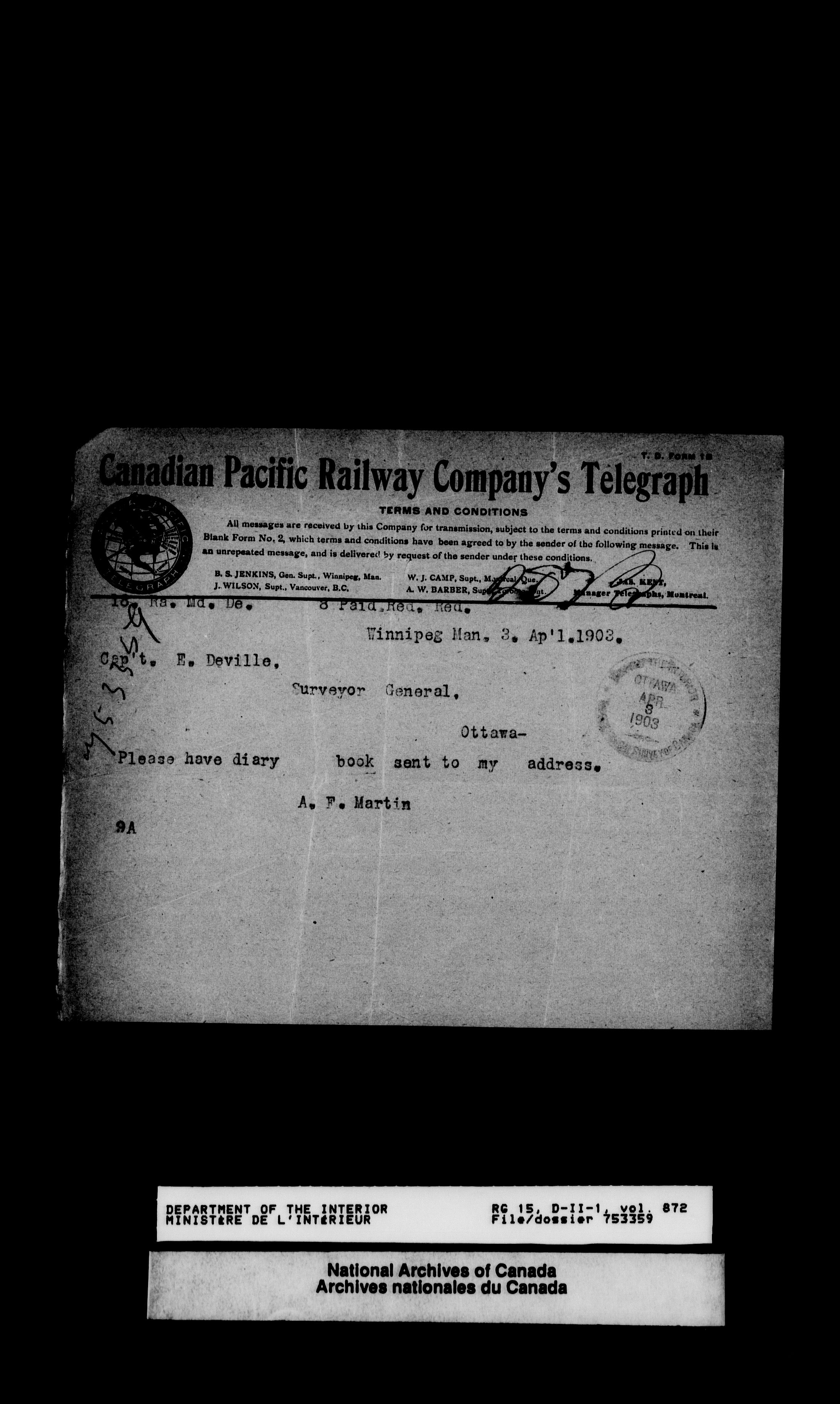 Dominion Lands Branch - Correspondence Files - 14491