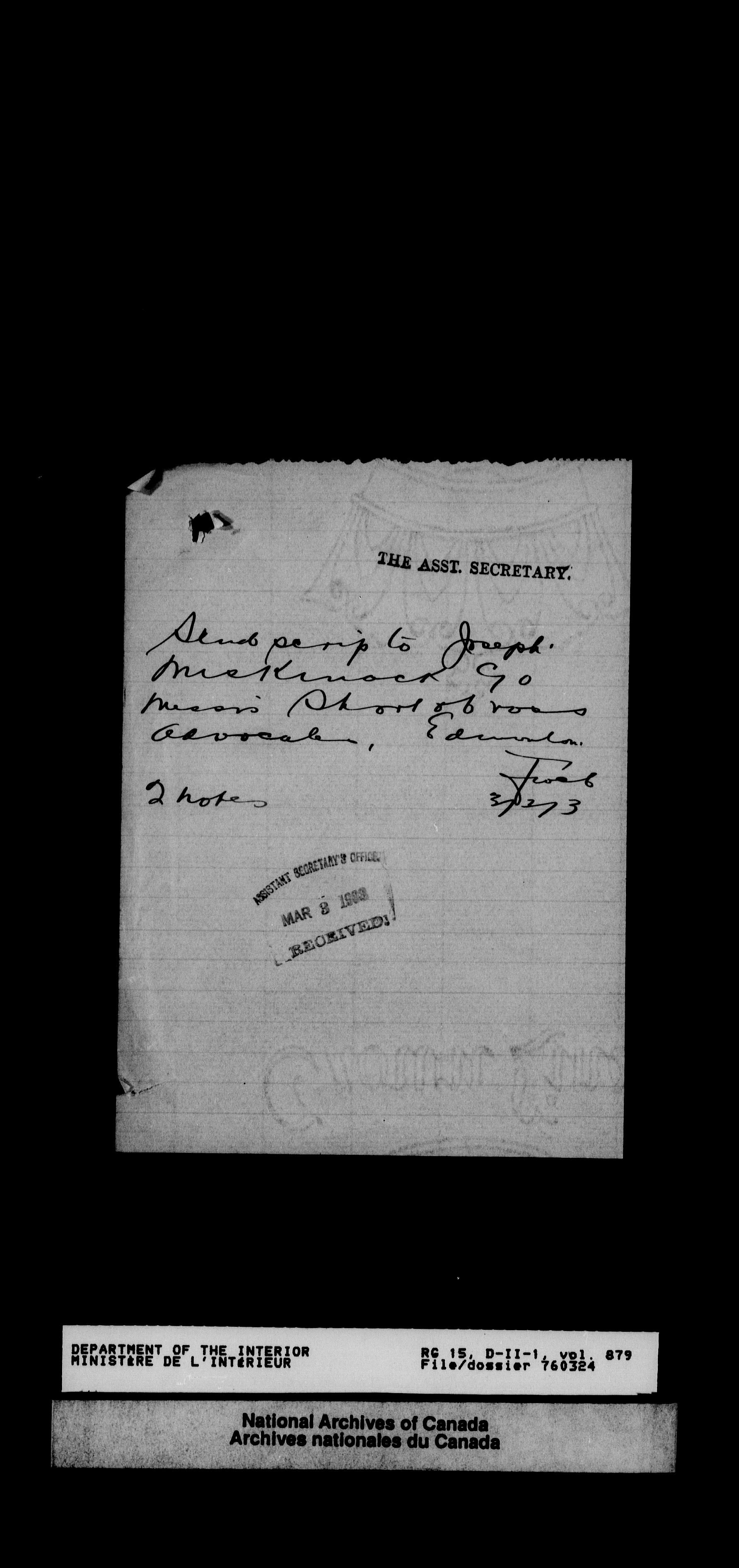 Dominion Lands Branch - Correspondence Files - 14496