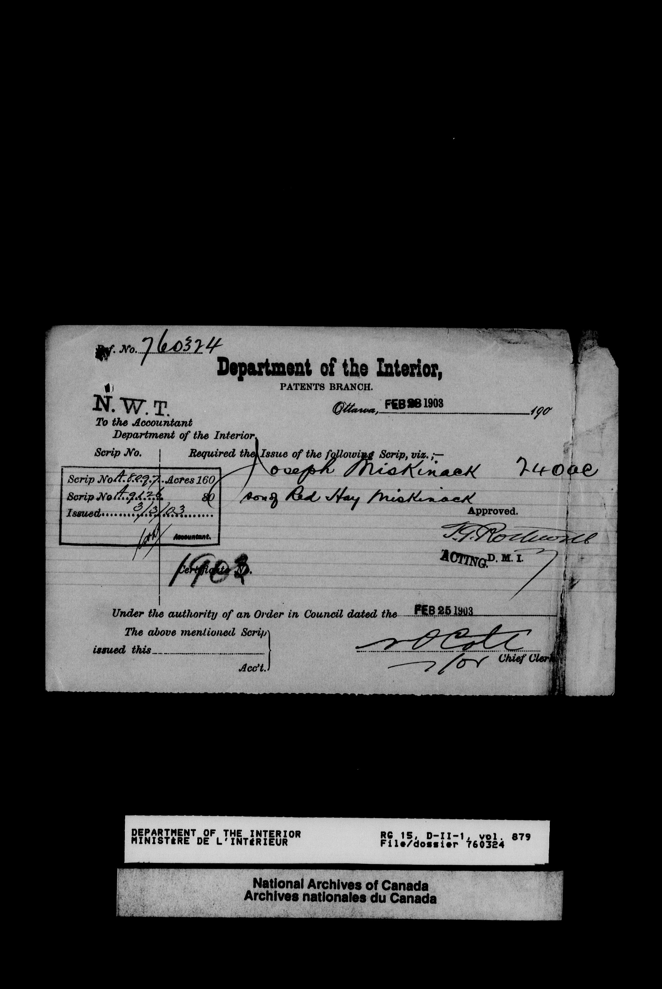 Dominion Lands Branch - Correspondence Files - 14496