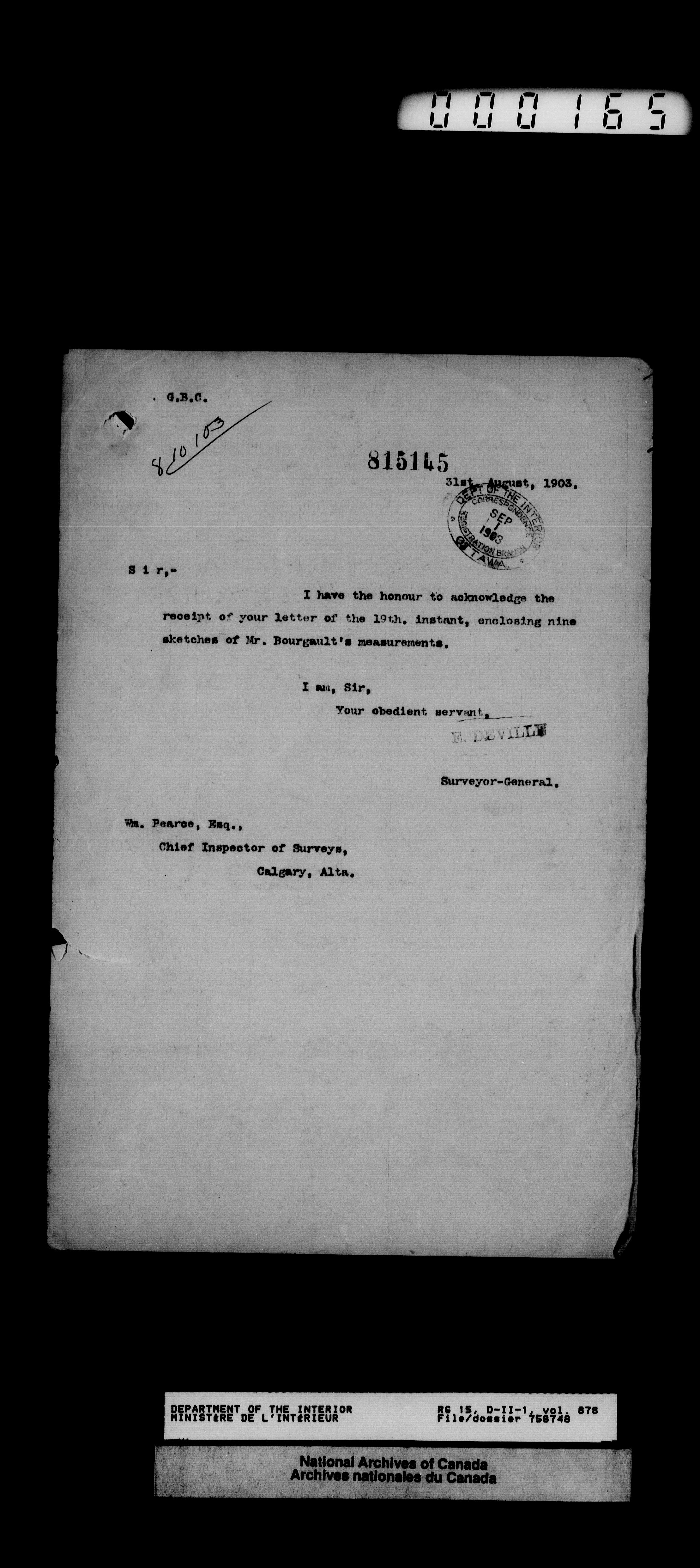 Dominion Lands Branch - Correspondence Files - 14496