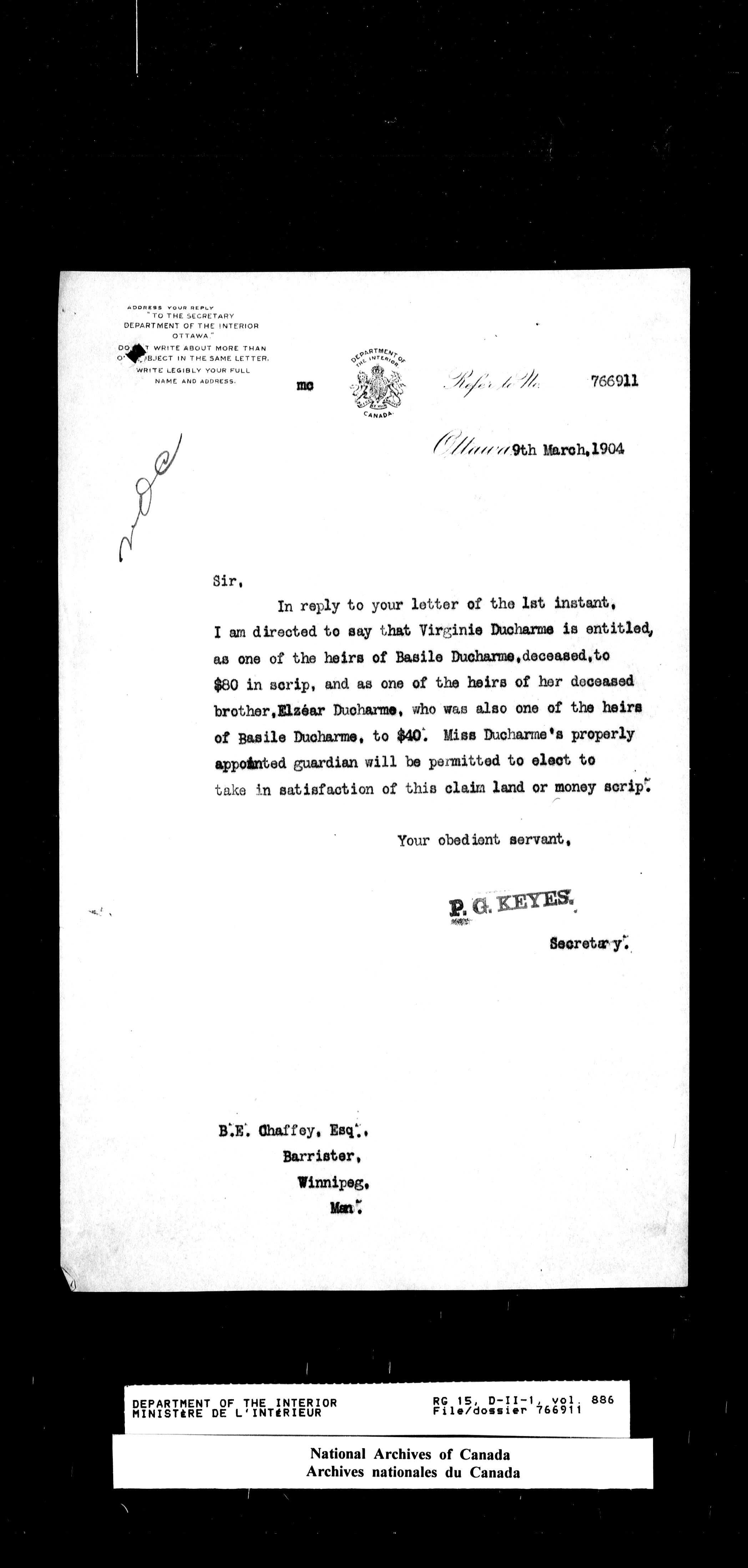 Dominion Lands Branch - Correspondence Files - 14501