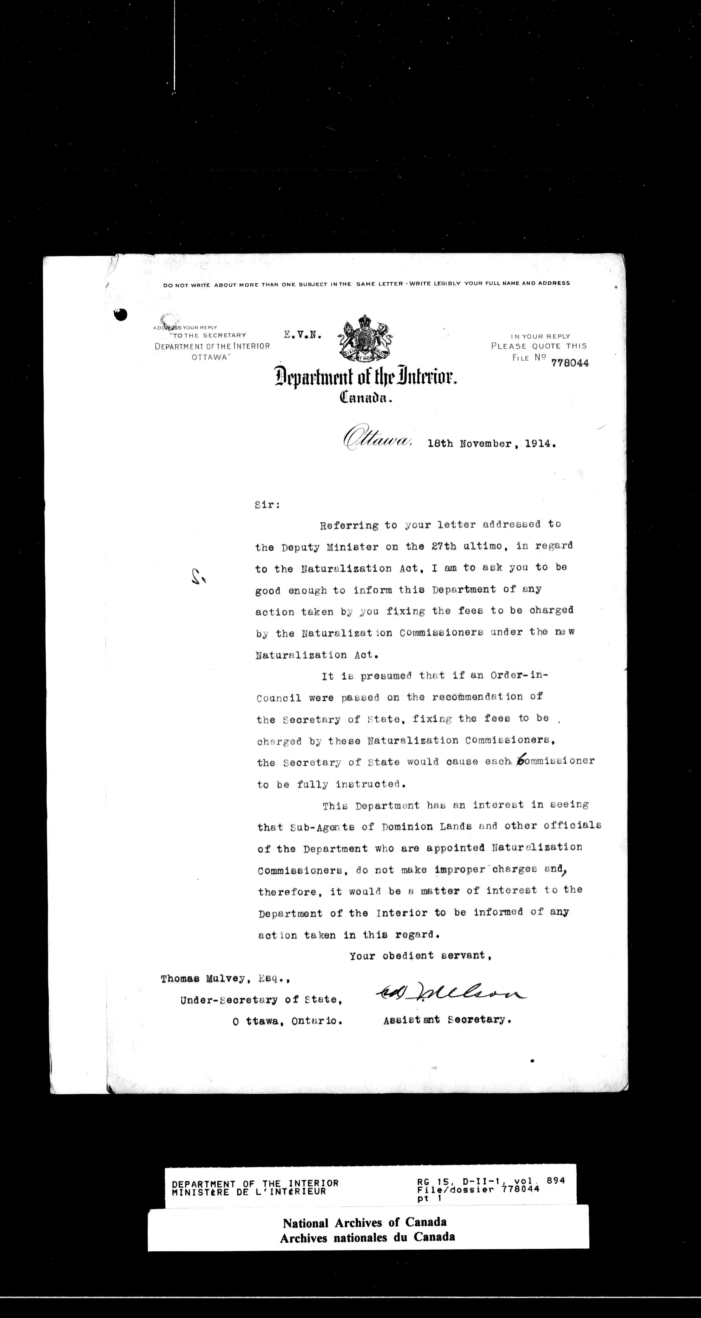 Dominion Lands Branch - Correspondence Files - 14507