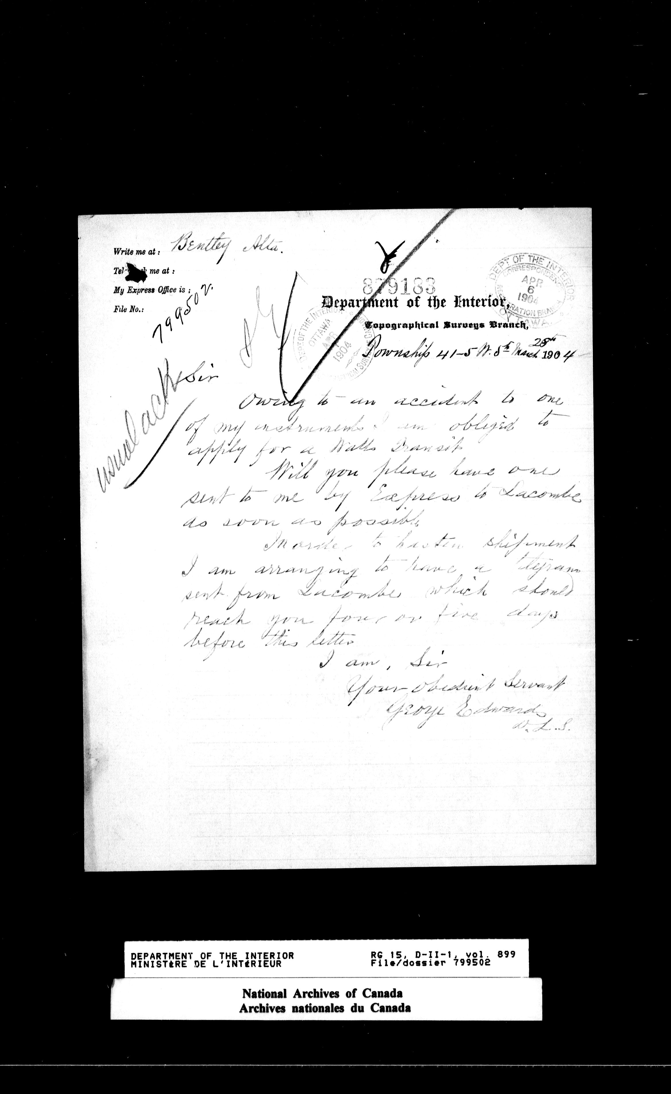Dominion Lands Branch - Correspondence Files - 14511