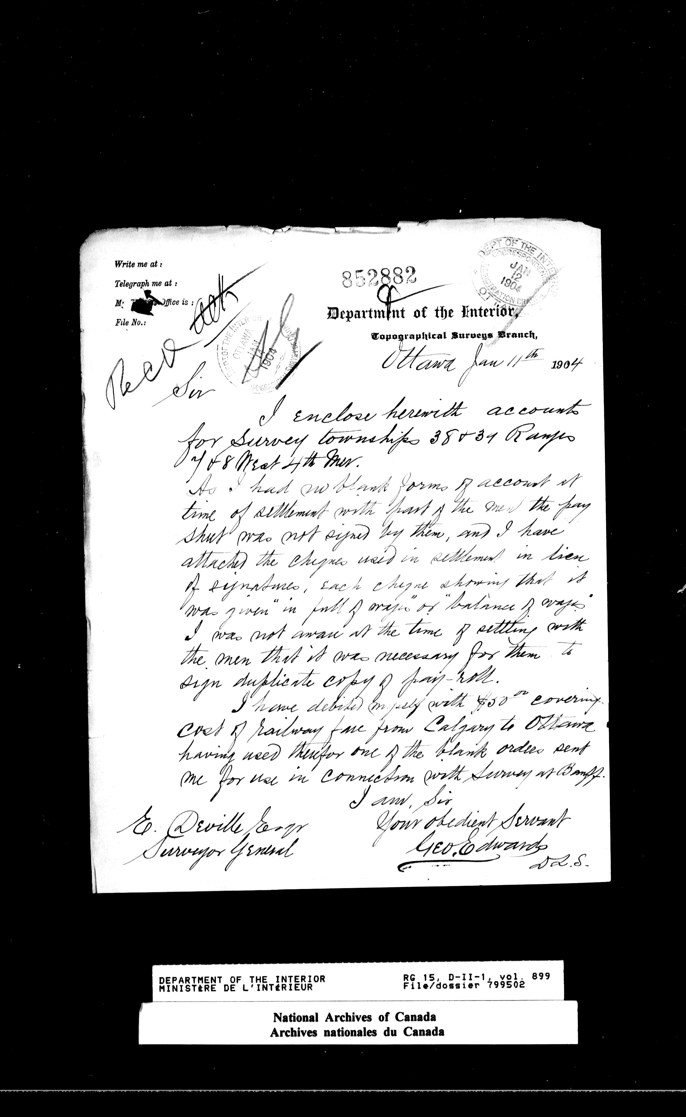 Dominion Lands Branch - Correspondence Files - 14511