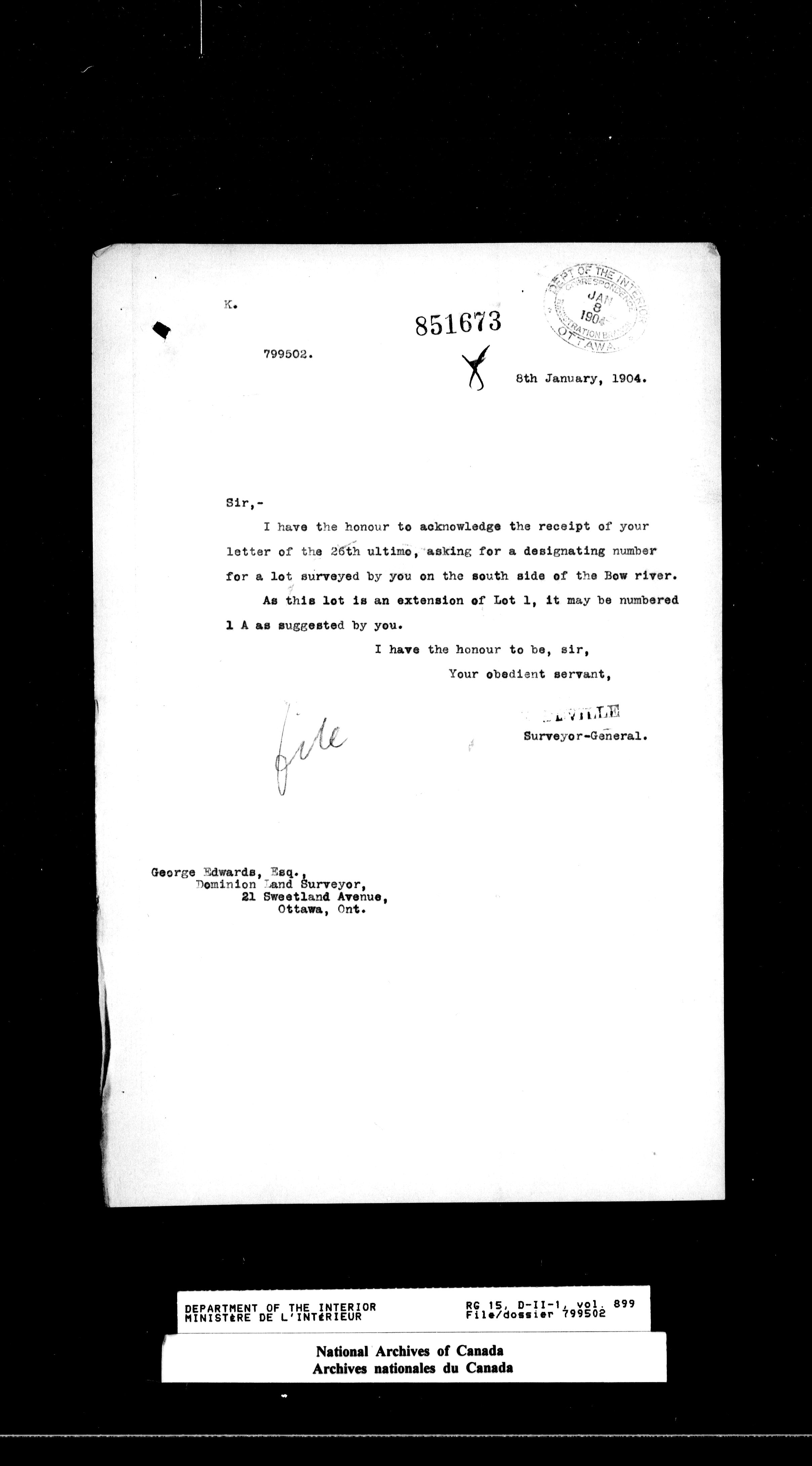 Dominion Lands Branch - Correspondence Files - 14511