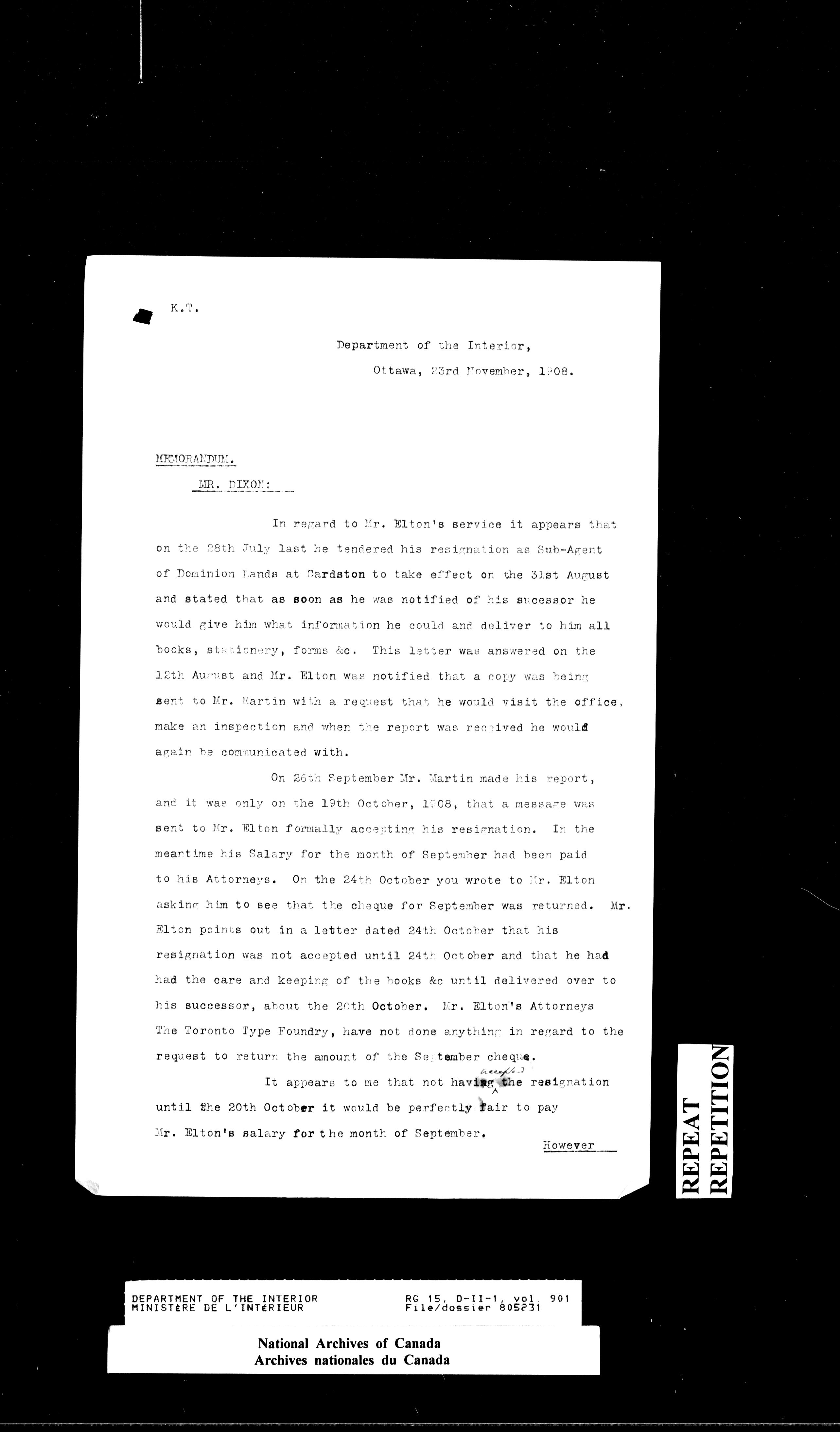 Dominion Lands Branch - Correspondence Files - 14512