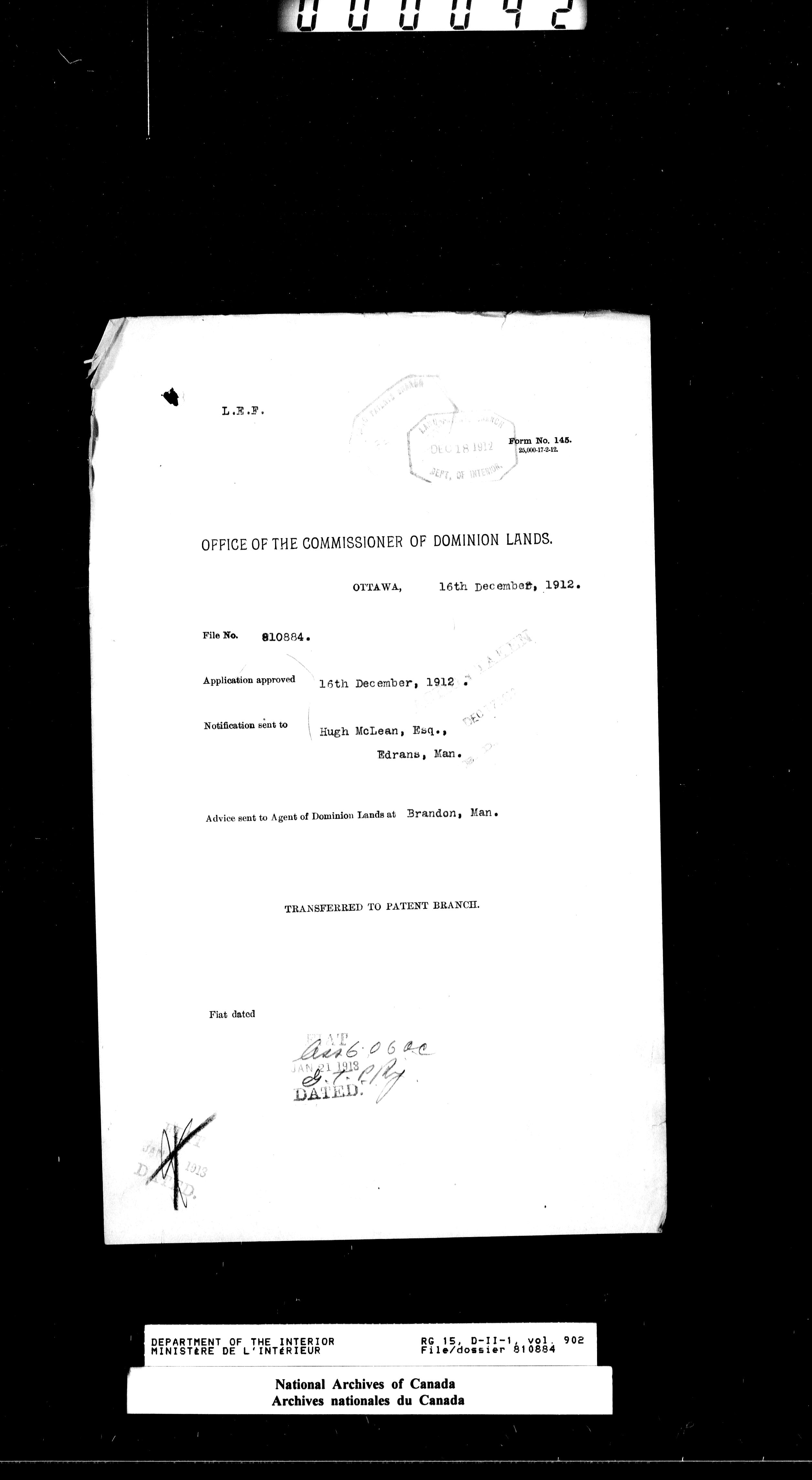Dominion Lands Branch - Correspondence Files - 14513
