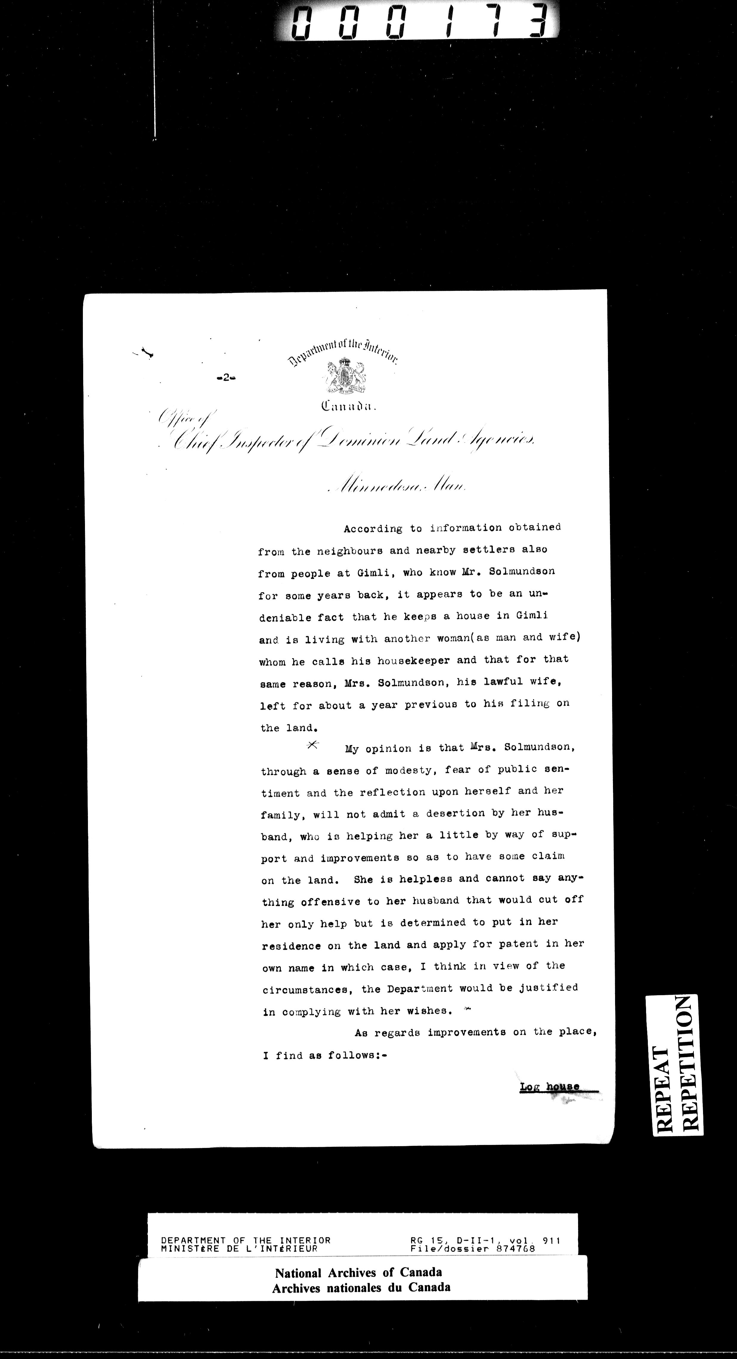 Dominion Lands Branch - Correspondence Files - 14520