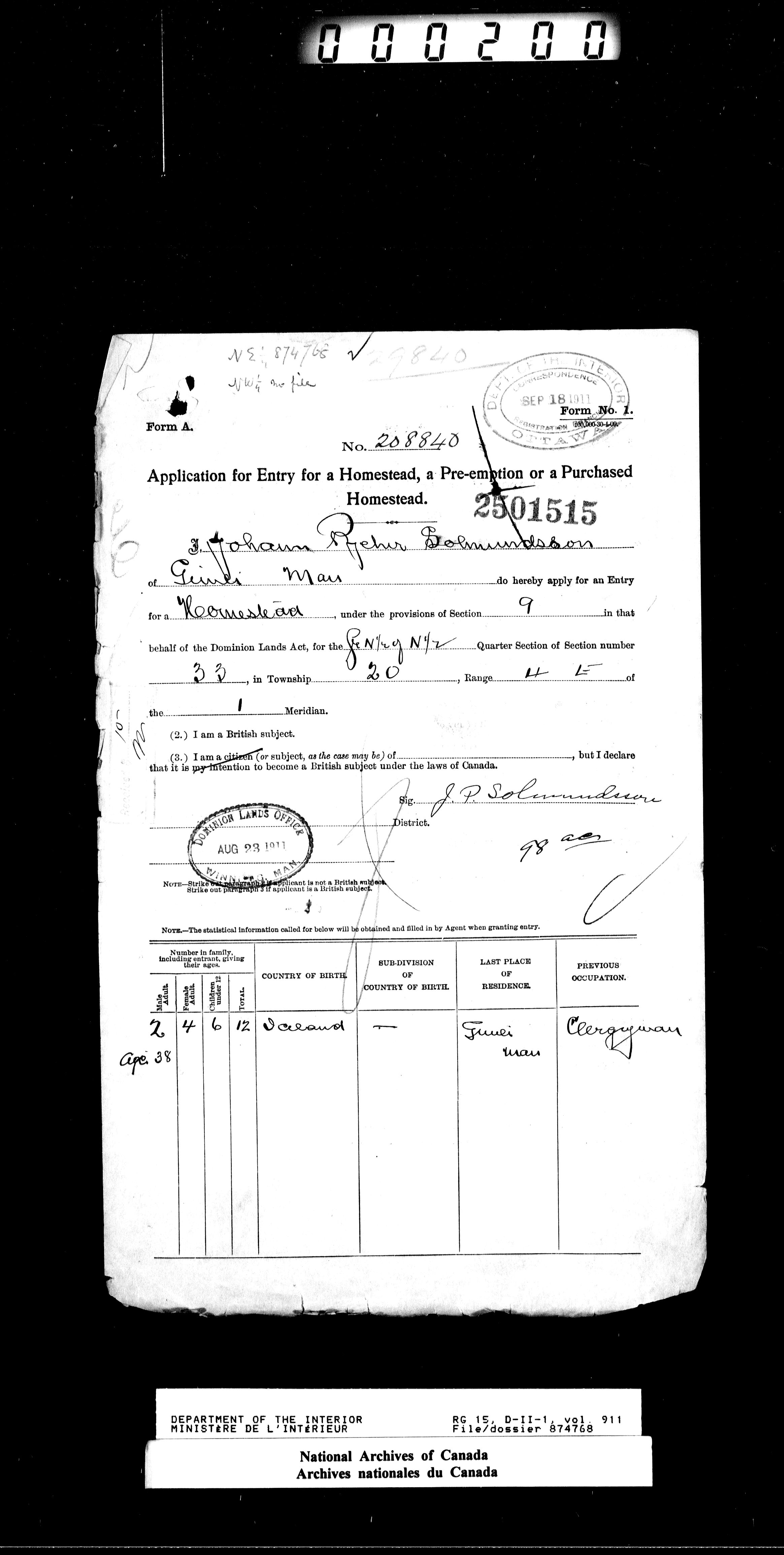 Dominion Lands Branch - Correspondence Files - 14520