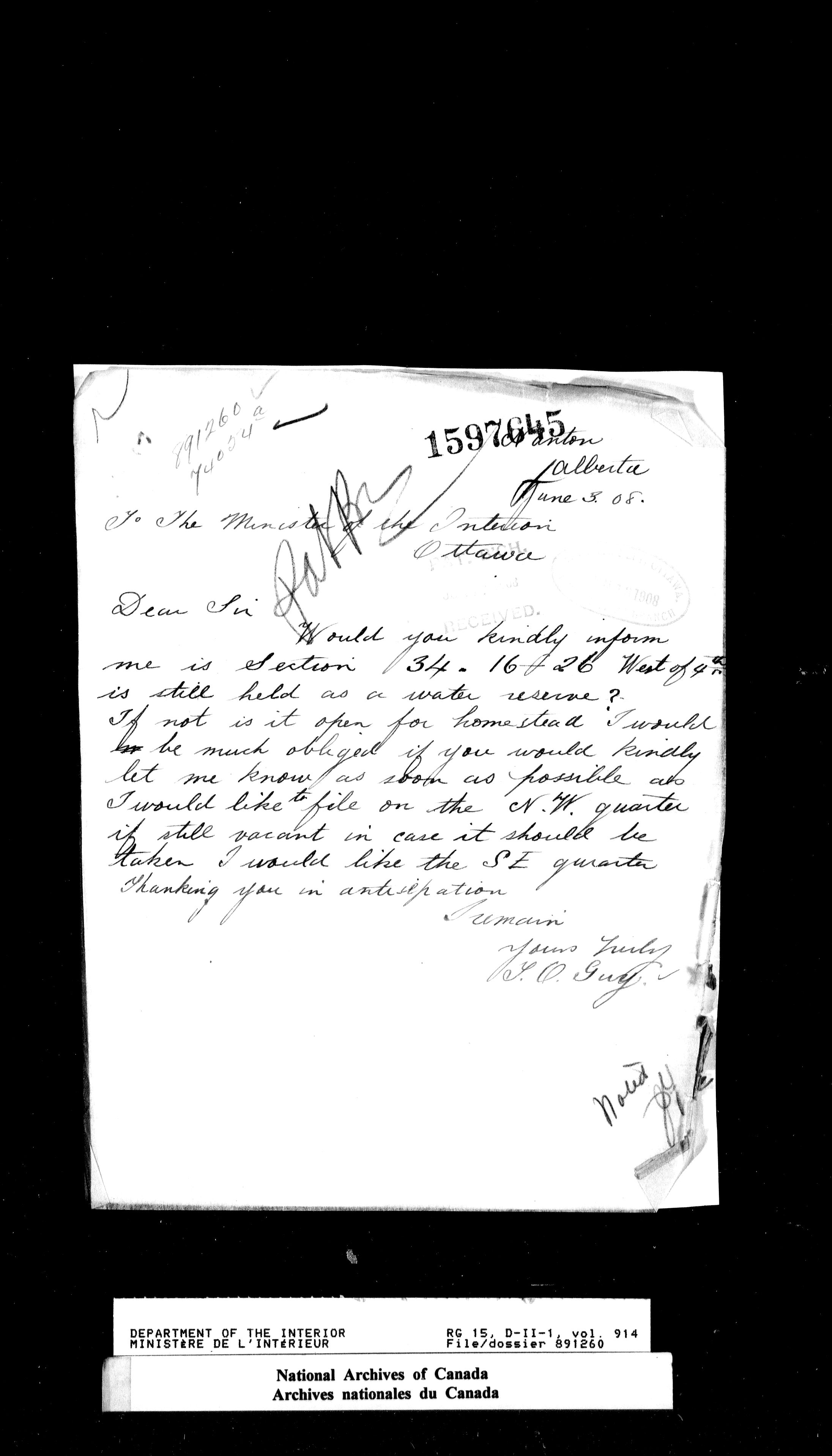 Dominion Lands Branch - Correspondence Files - 14522