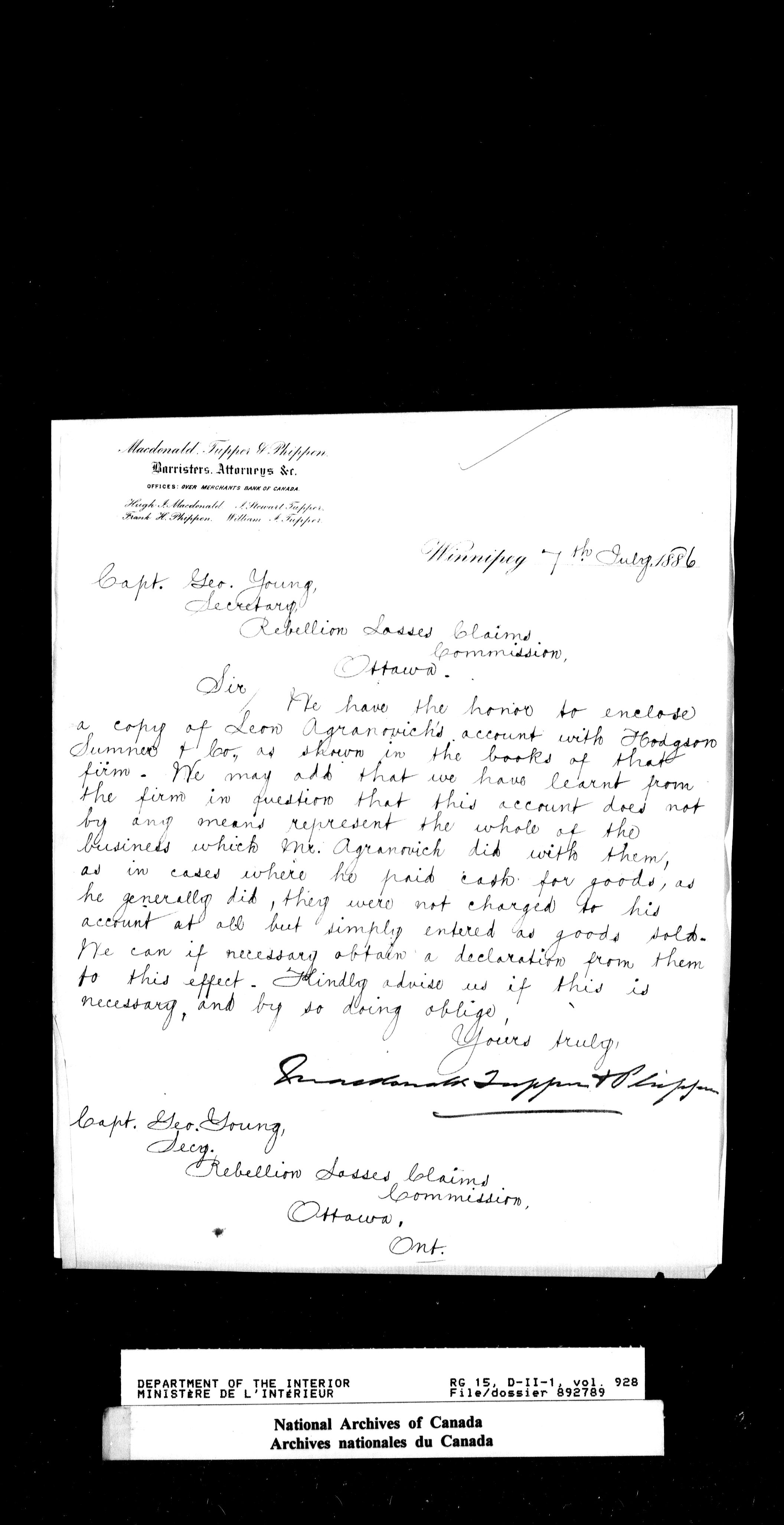 Dominion Lands Branch : Correspondence files : T-14527