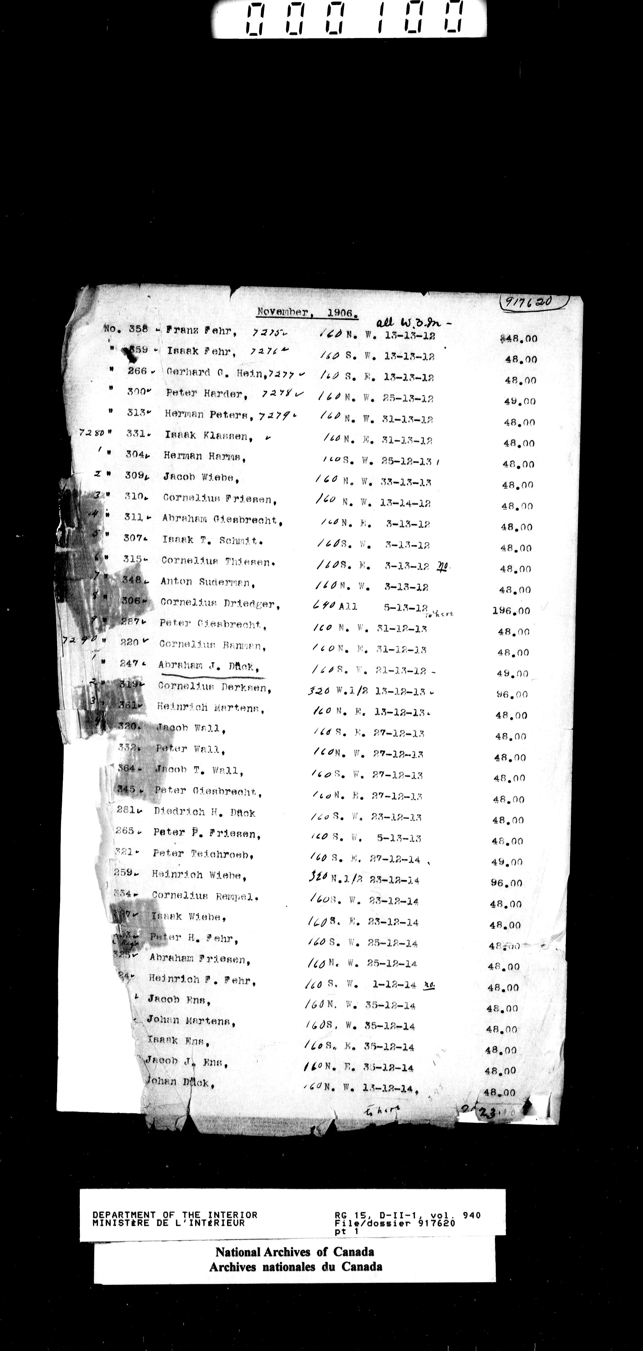 Dominion Lands Branch - Correspondence Files - 14532