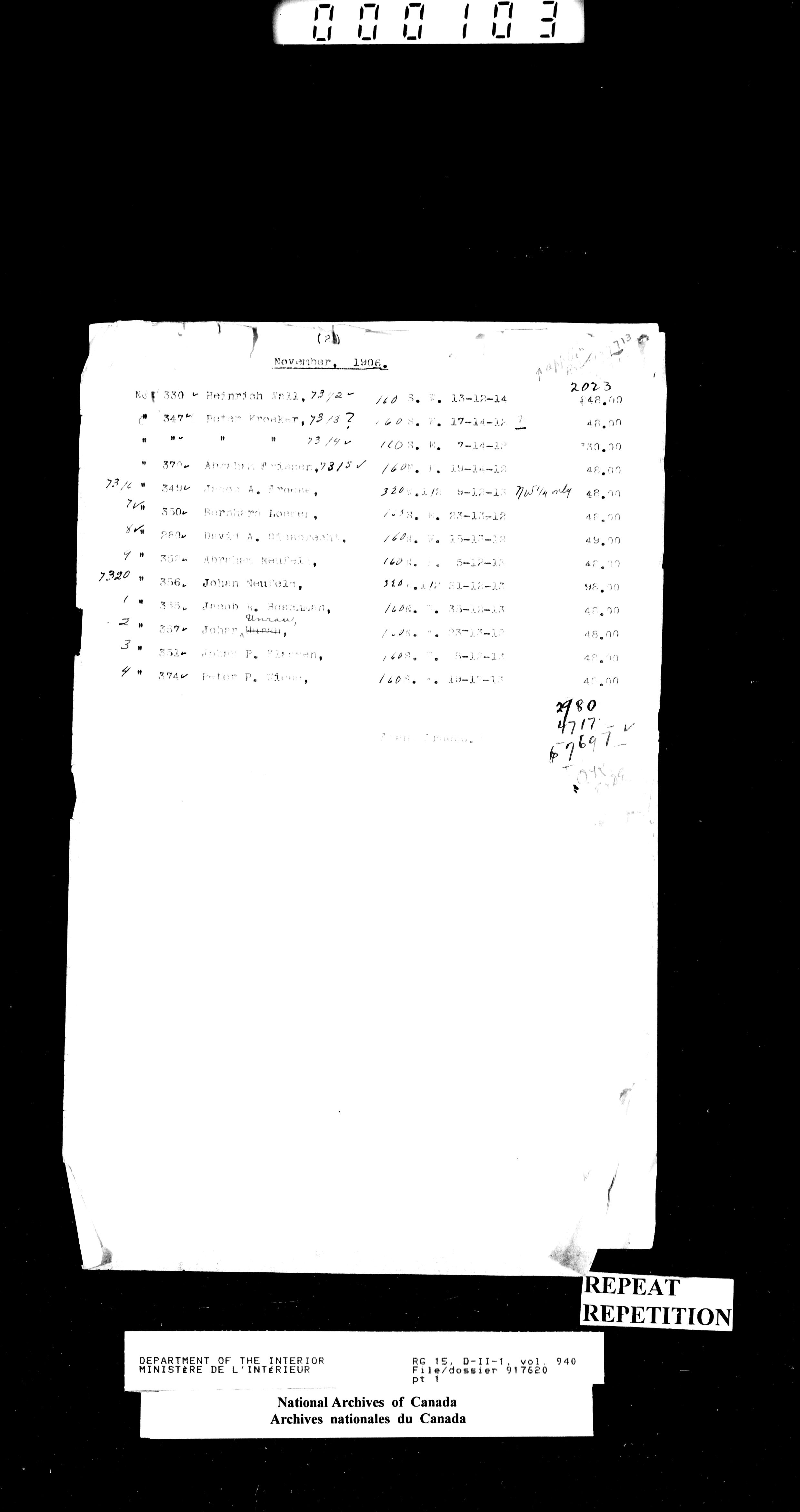 Dominion Lands Branch - Correspondence Files - 14532