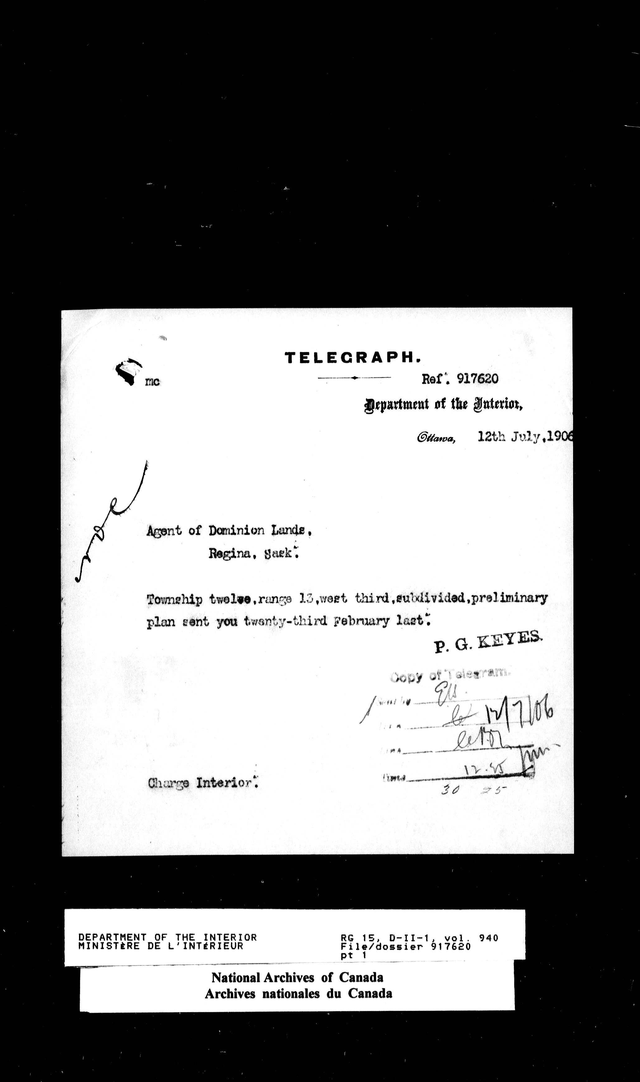 Dominion Lands Branch - Correspondence Files - 14532