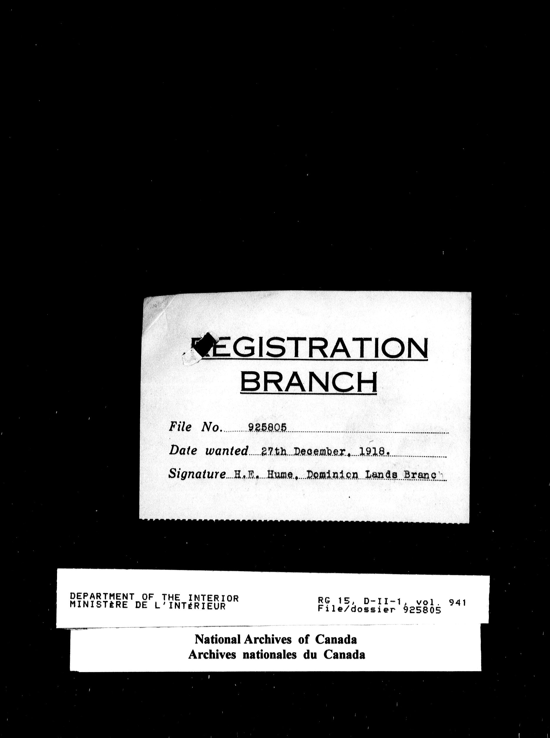 Dominion Lands Branch - Correspondence Files - 14532