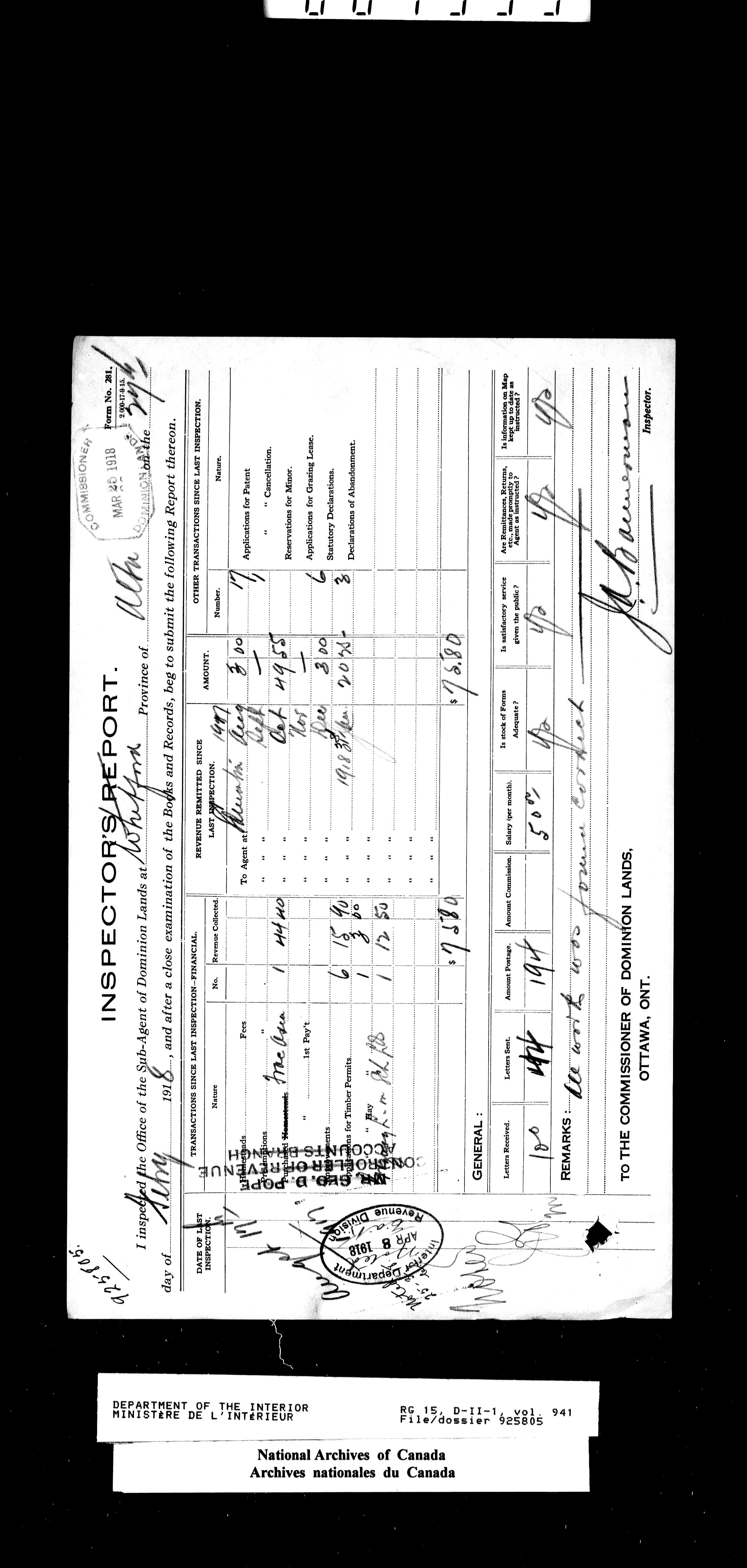 Dominion Lands Branch - Correspondence Files - 14532
