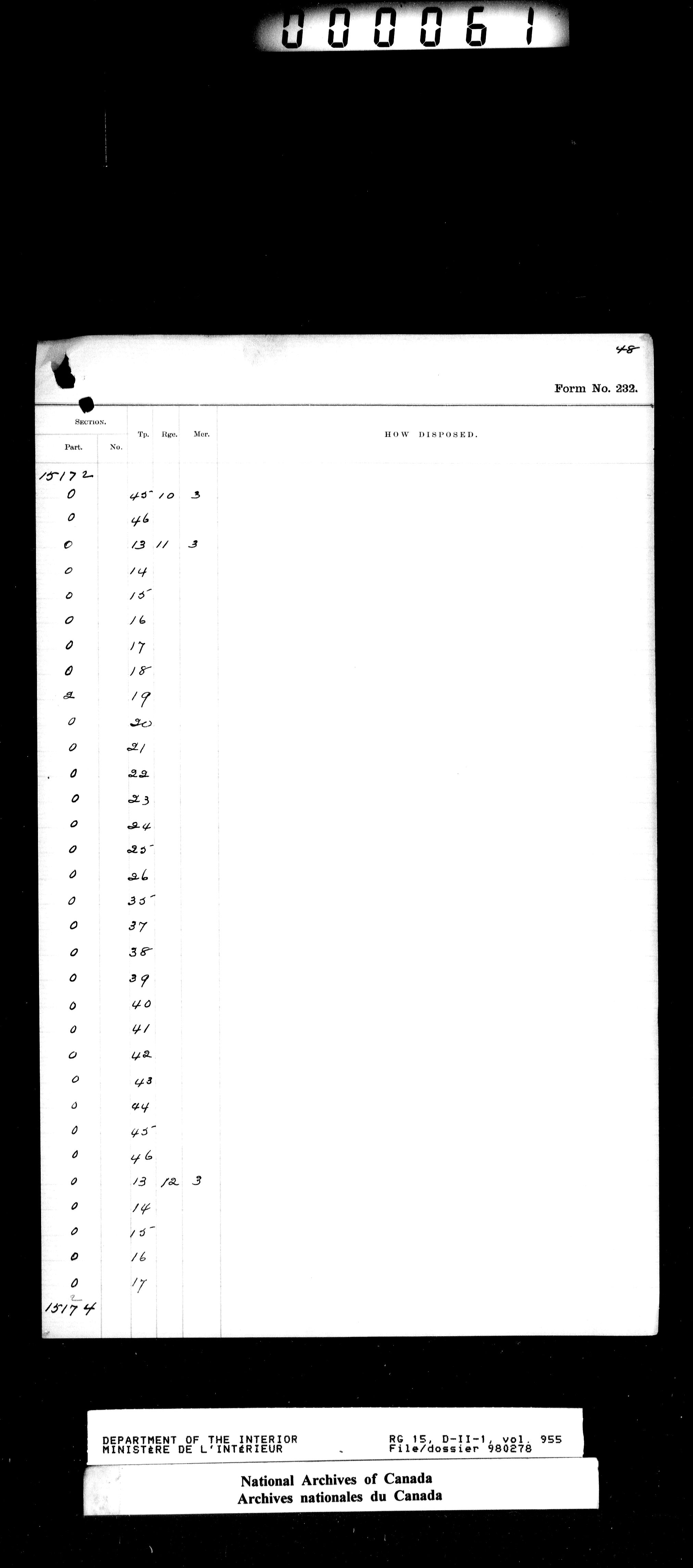 Dominion Lands Branch - Correspondence Files - 14543