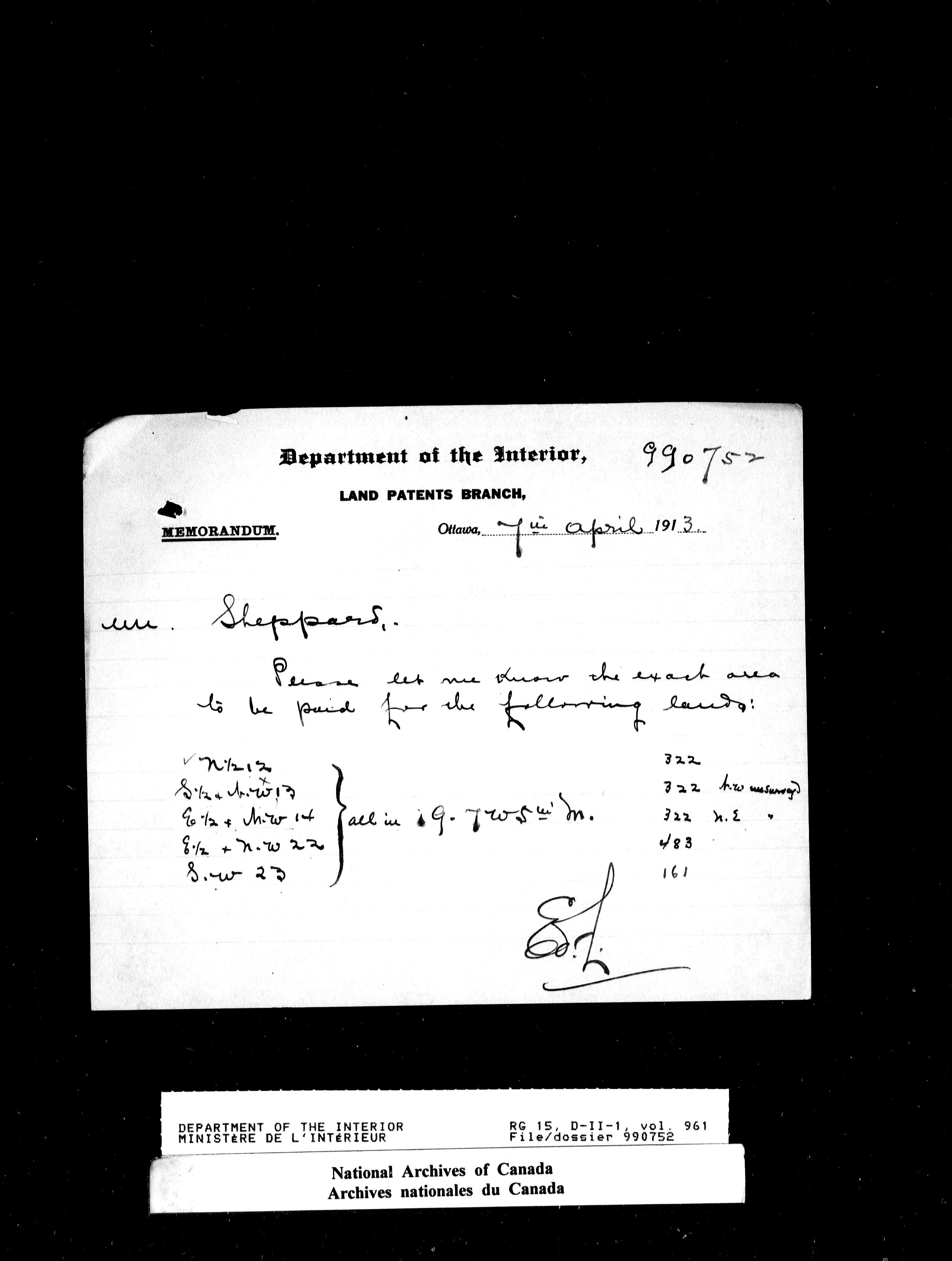 Dominion Lands Branch - Correspondence Files - 14545