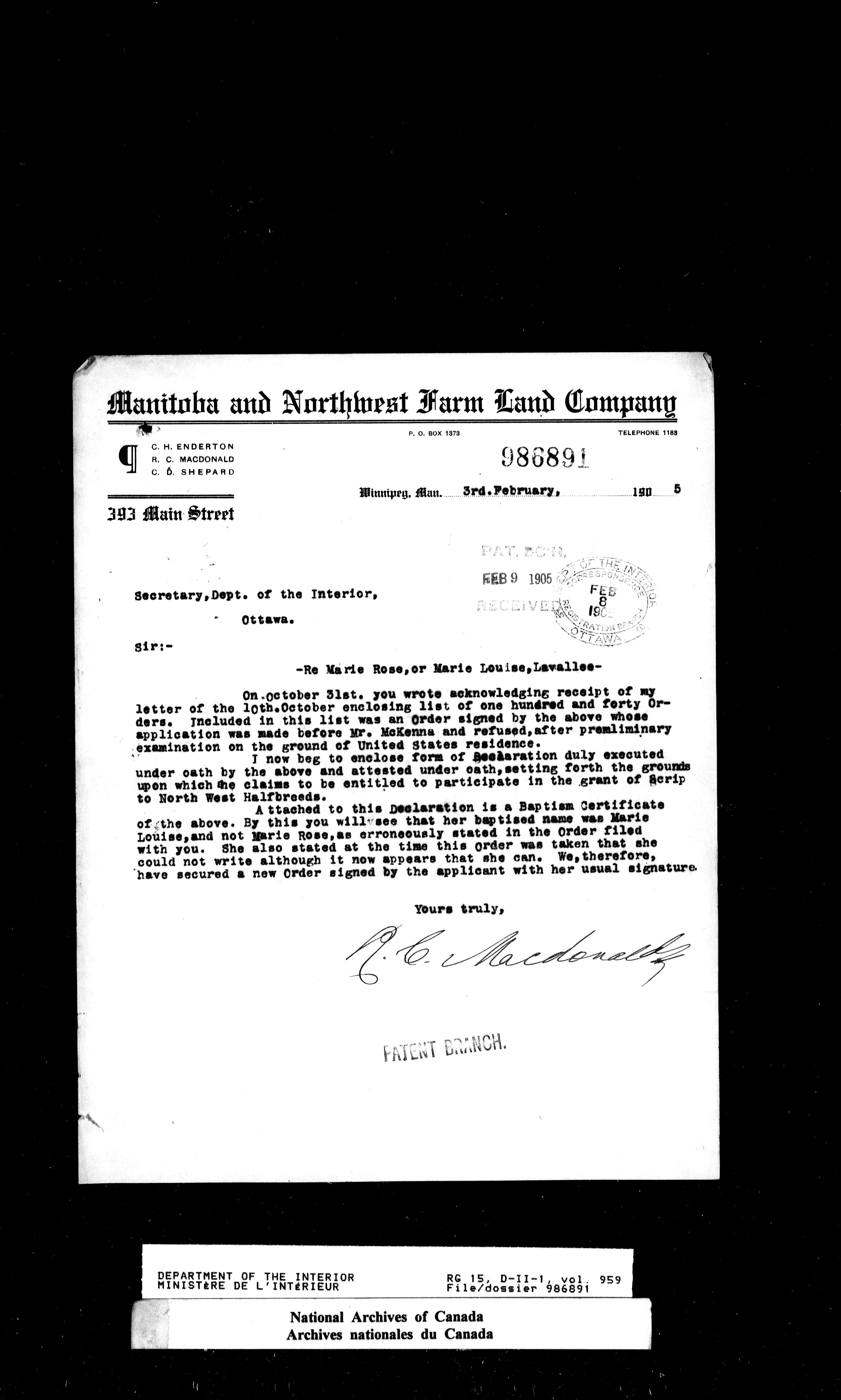 Dominion Lands Branch - Correspondence Files - 14545