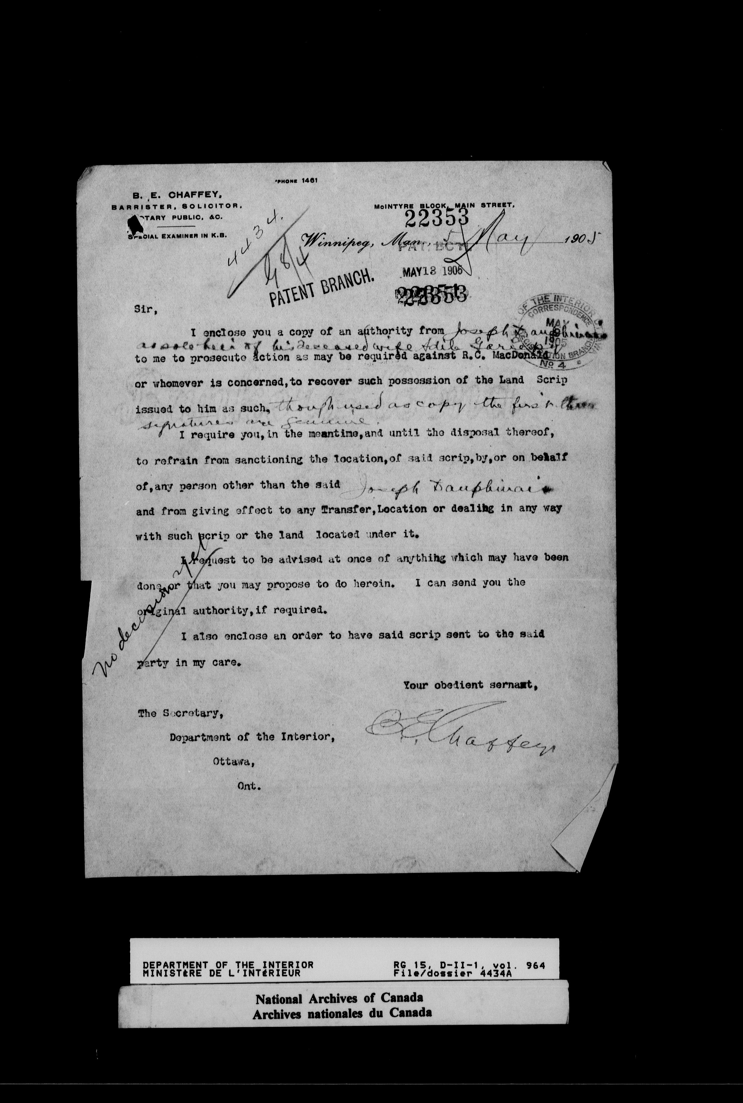 Dominion Lands Branch : Correspondence files : T-14547