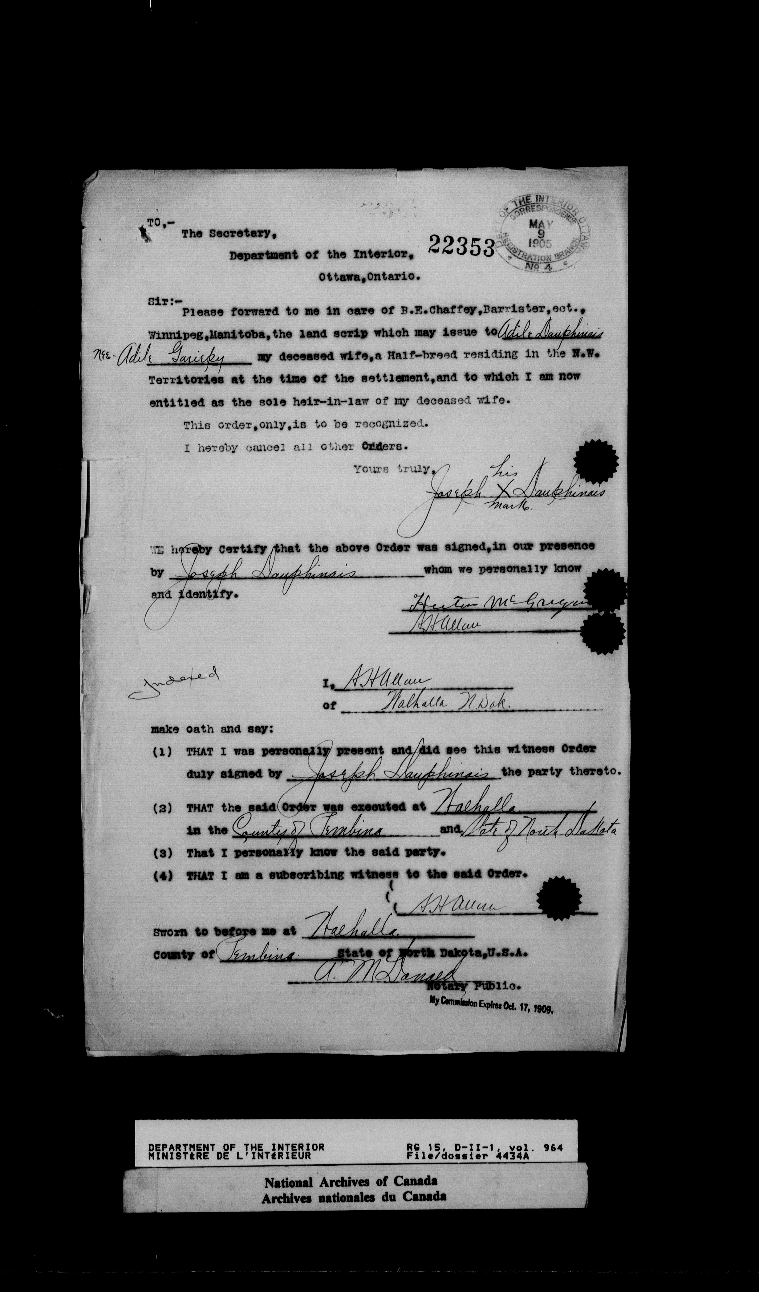 Dominion Lands Branch : Correspondence files : T-14547