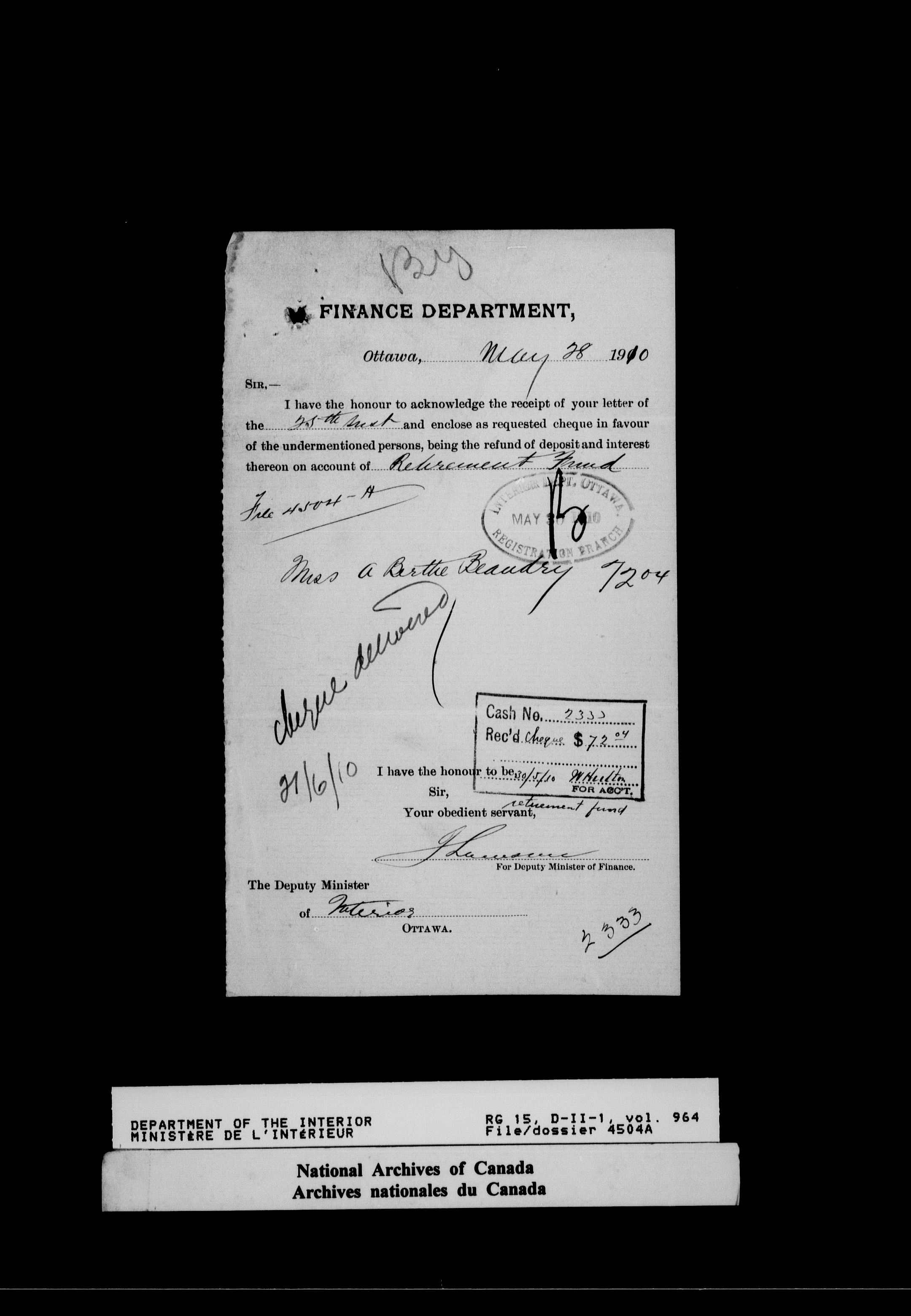 Dominion Lands Branch - Correspondence Files - 14547