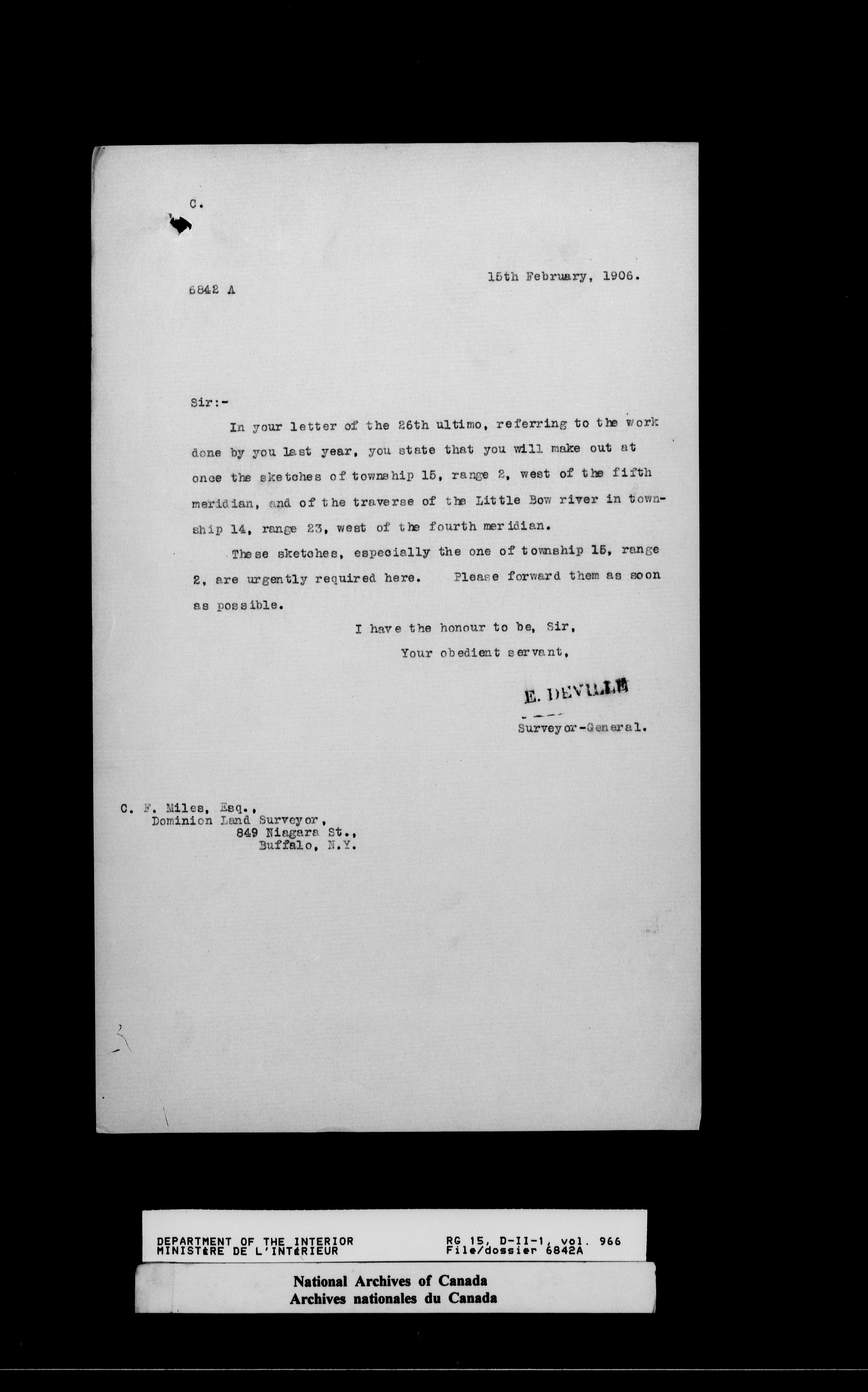 Dominion Lands Branch : Correspondence files : T-14548