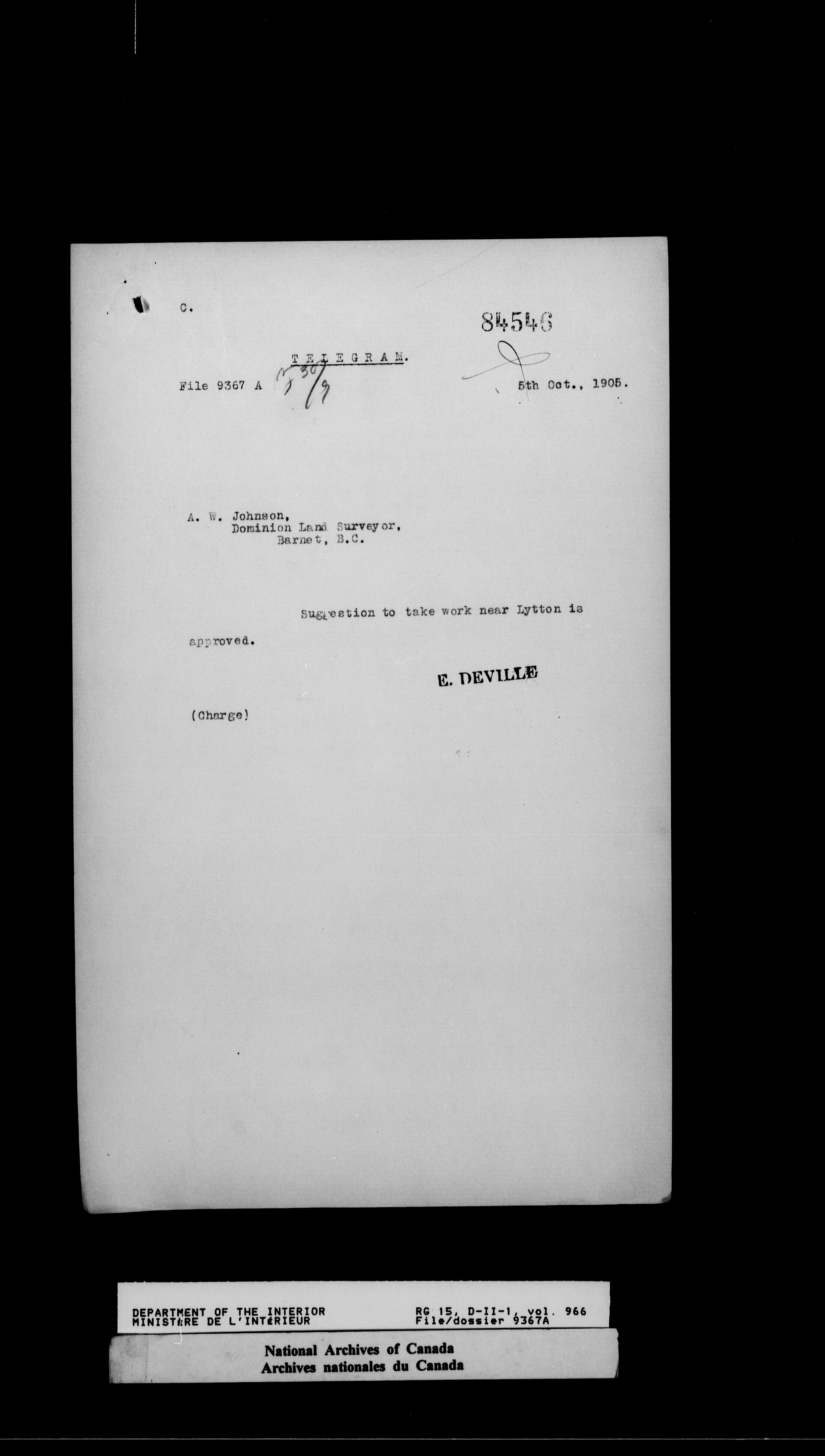 Dominion Lands Branch : Correspondence files : T-14549
