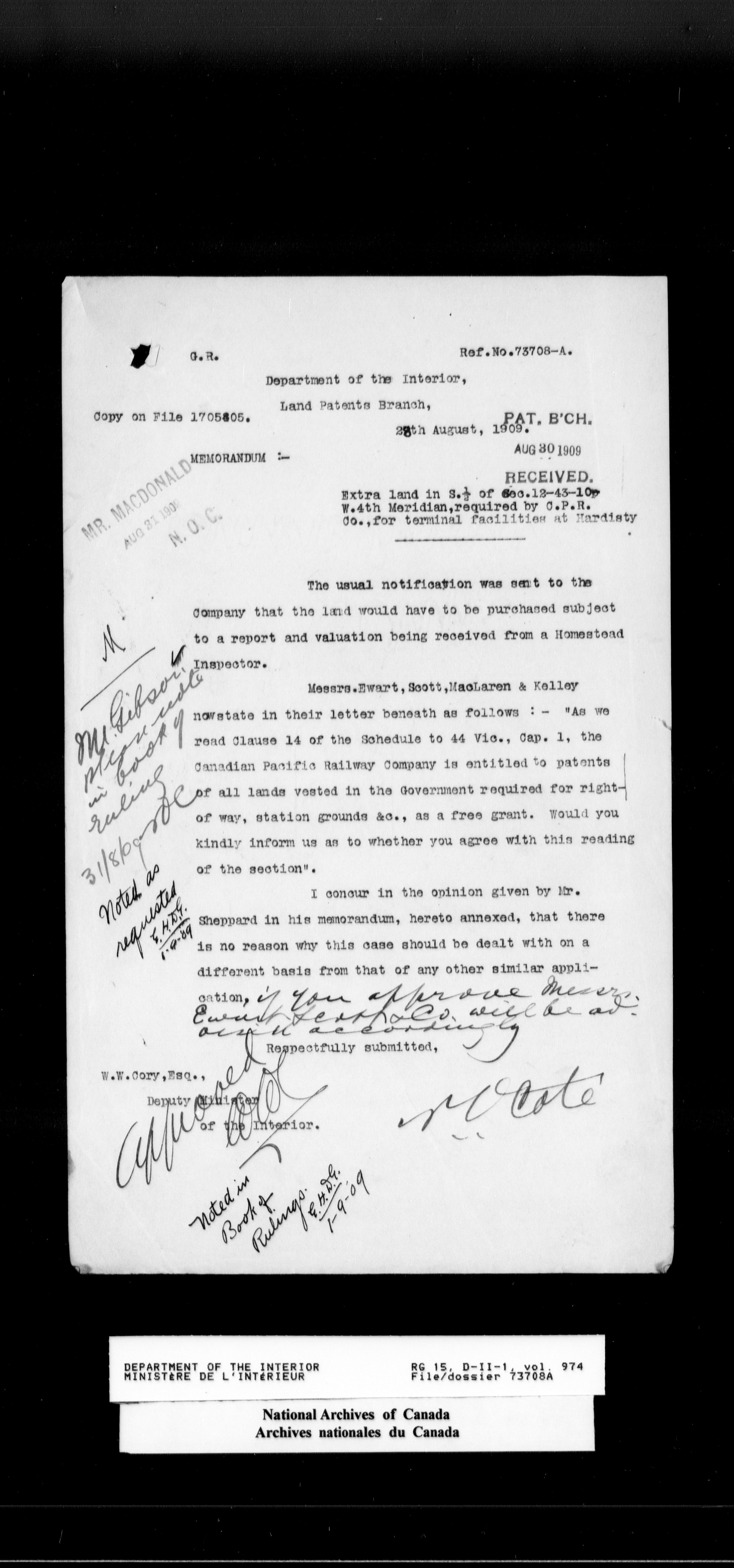 Dominion Lands Branch - Correspondence Files - 14555