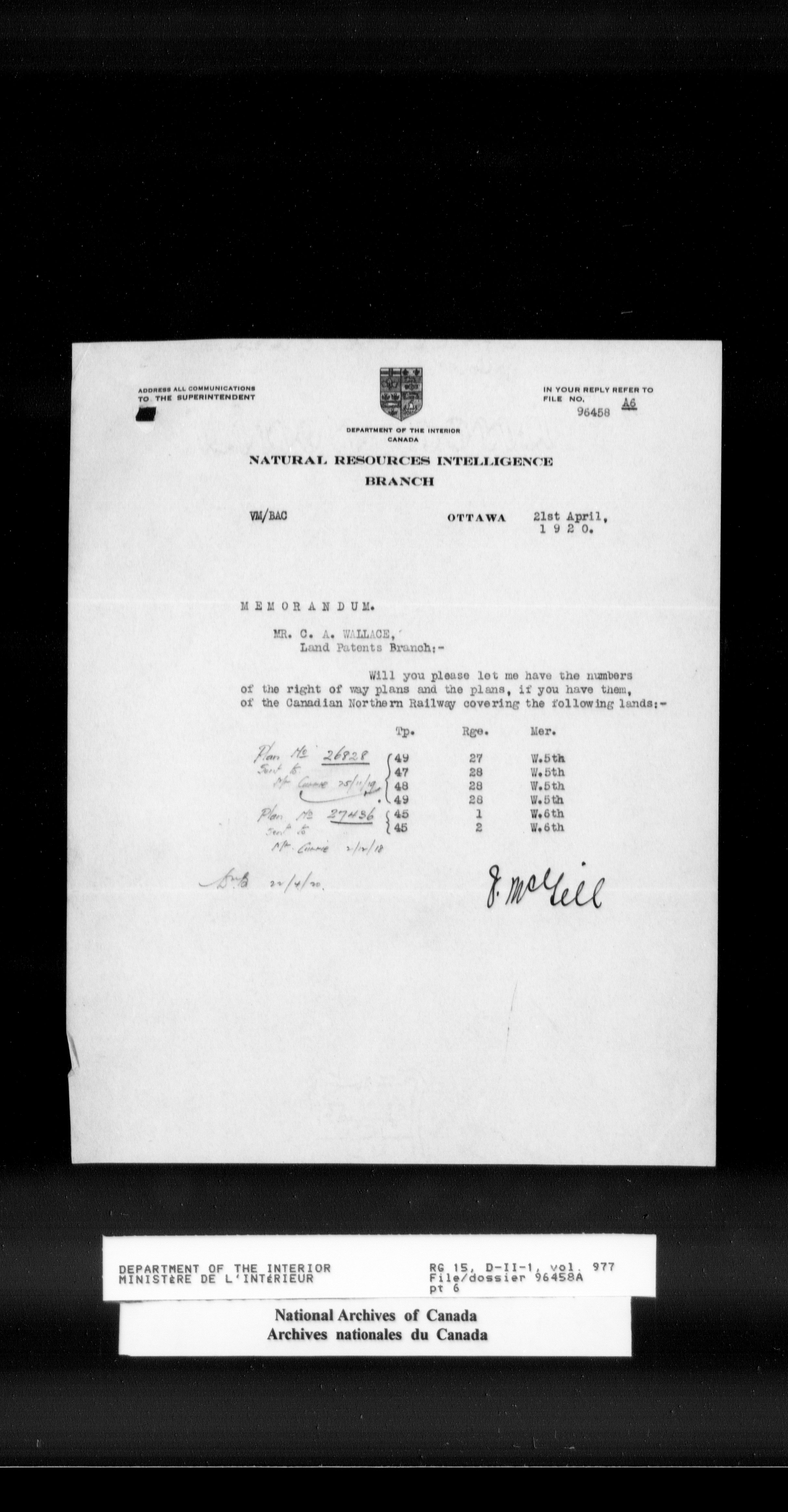 Dominion Lands Branch - Correspondence Files - 14557