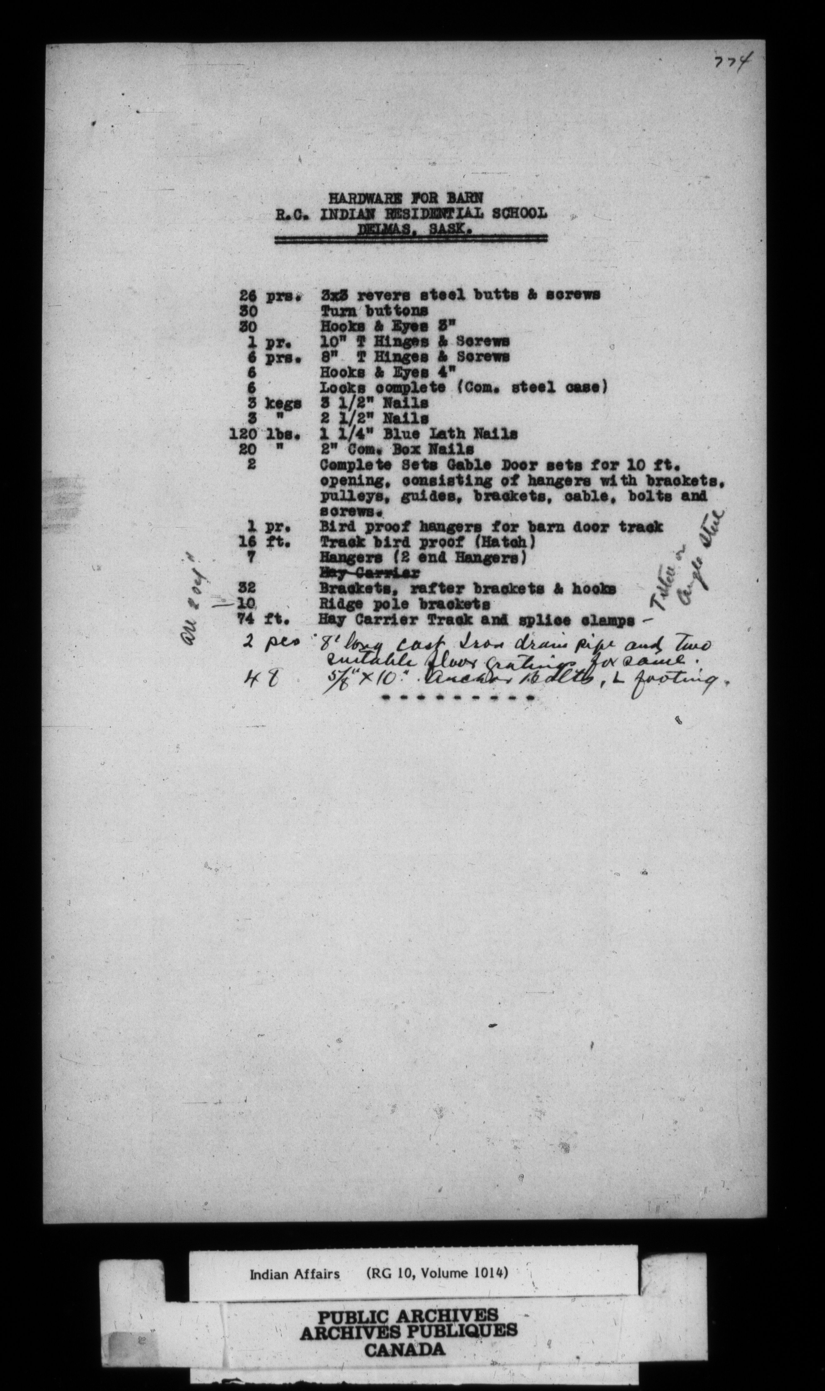 Battleford Agency, Schools, 1913-1922 - requisition for school materials at Thunderchild Day and Residential Schools, Red Pheasant Stoney Day School, Little Pine Day School, admission to Onion Lake Residential School, school administration|Battleford Agency, Schools, 1917-1932 - medical reports, same as above, mostly Thunderchild Day School