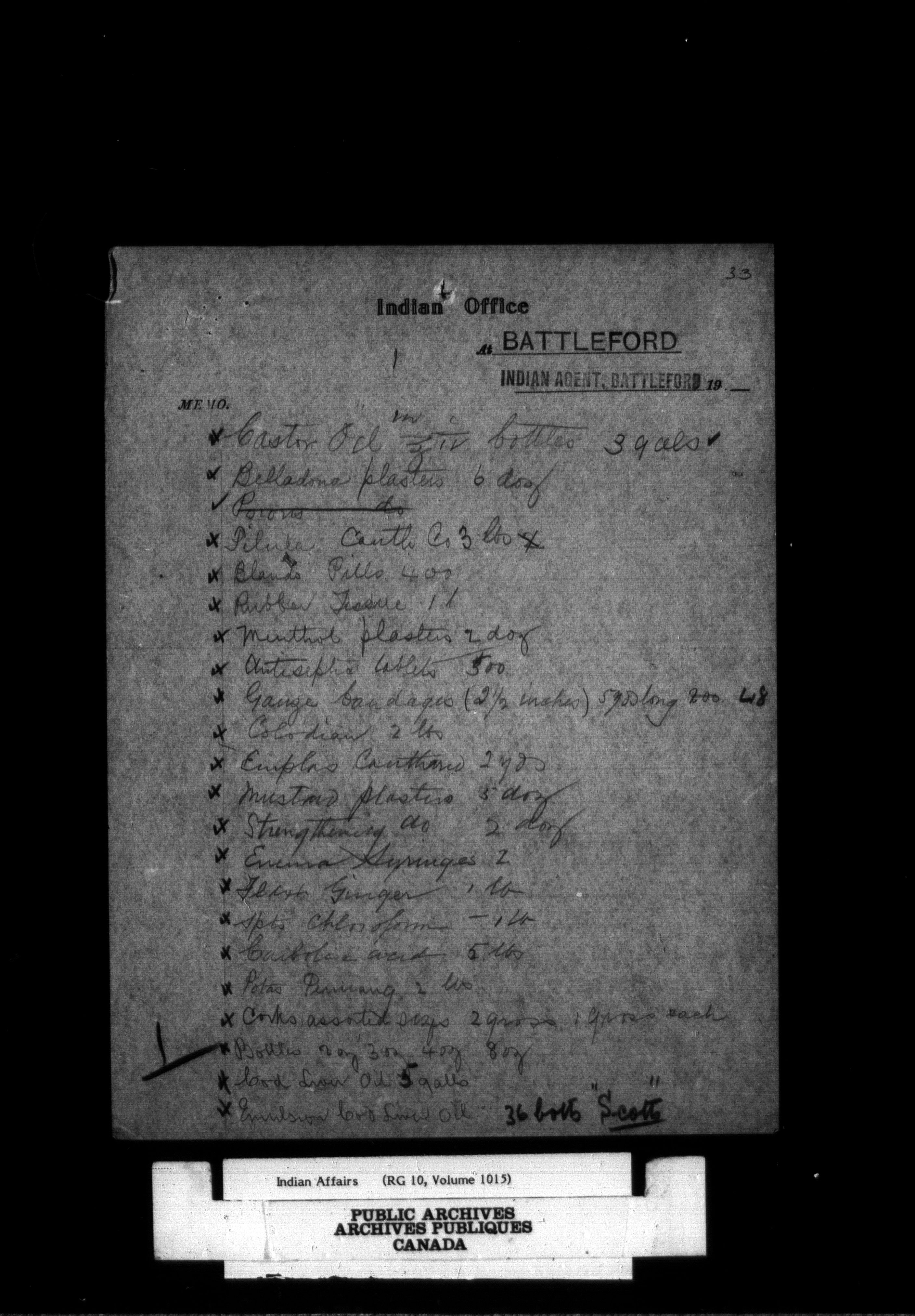 Battleford Agency, Schools, 1908-1935 - Purchase of drugs, medical reports, doctor's correspondence