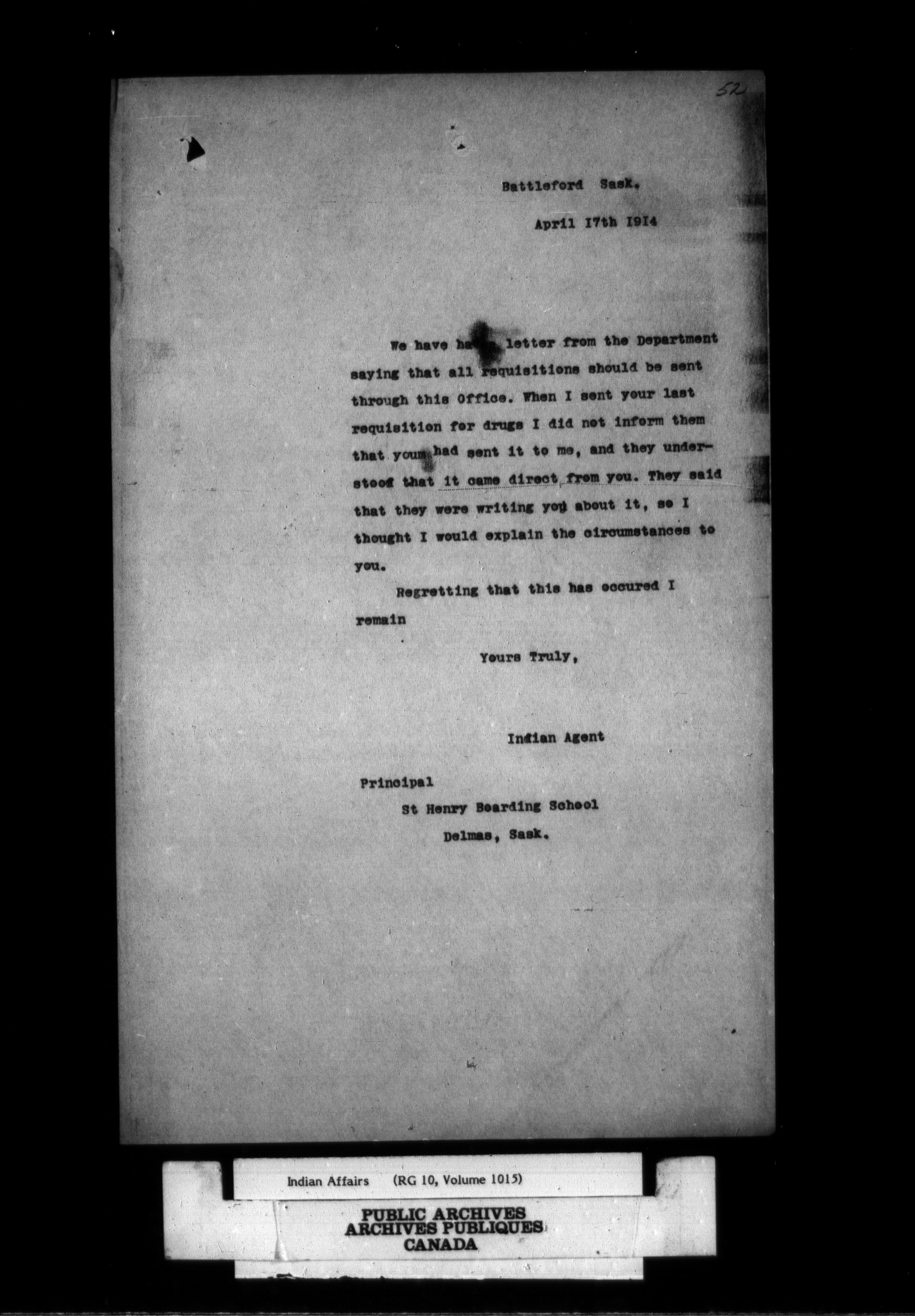 Battleford Agency, Schools, 1908-1935 - Purchase of drugs, medical reports, doctor's correspondence