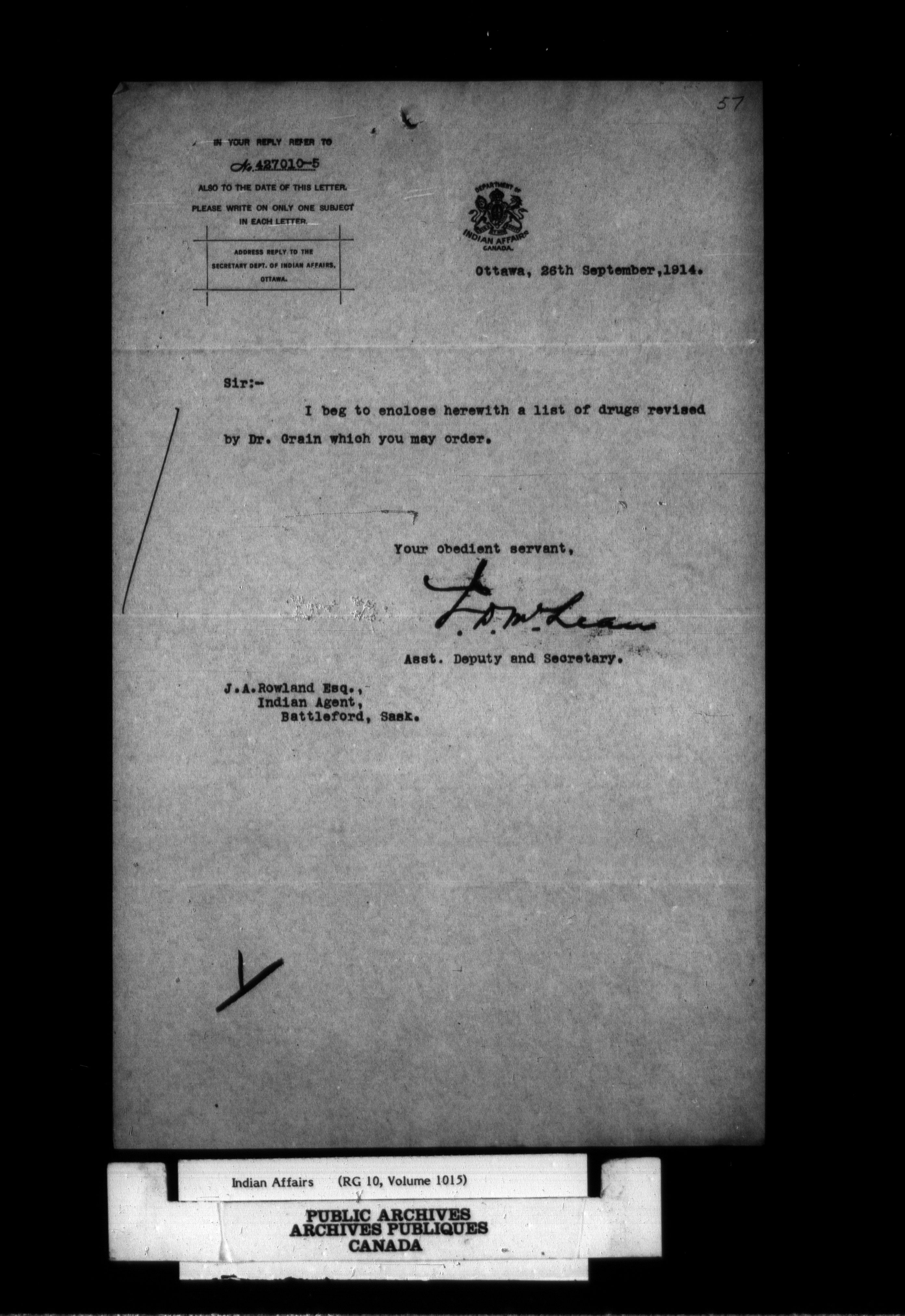 Battleford Agency, Schools, 1908-1935 - Purchase of drugs, medical reports, doctor's correspondence