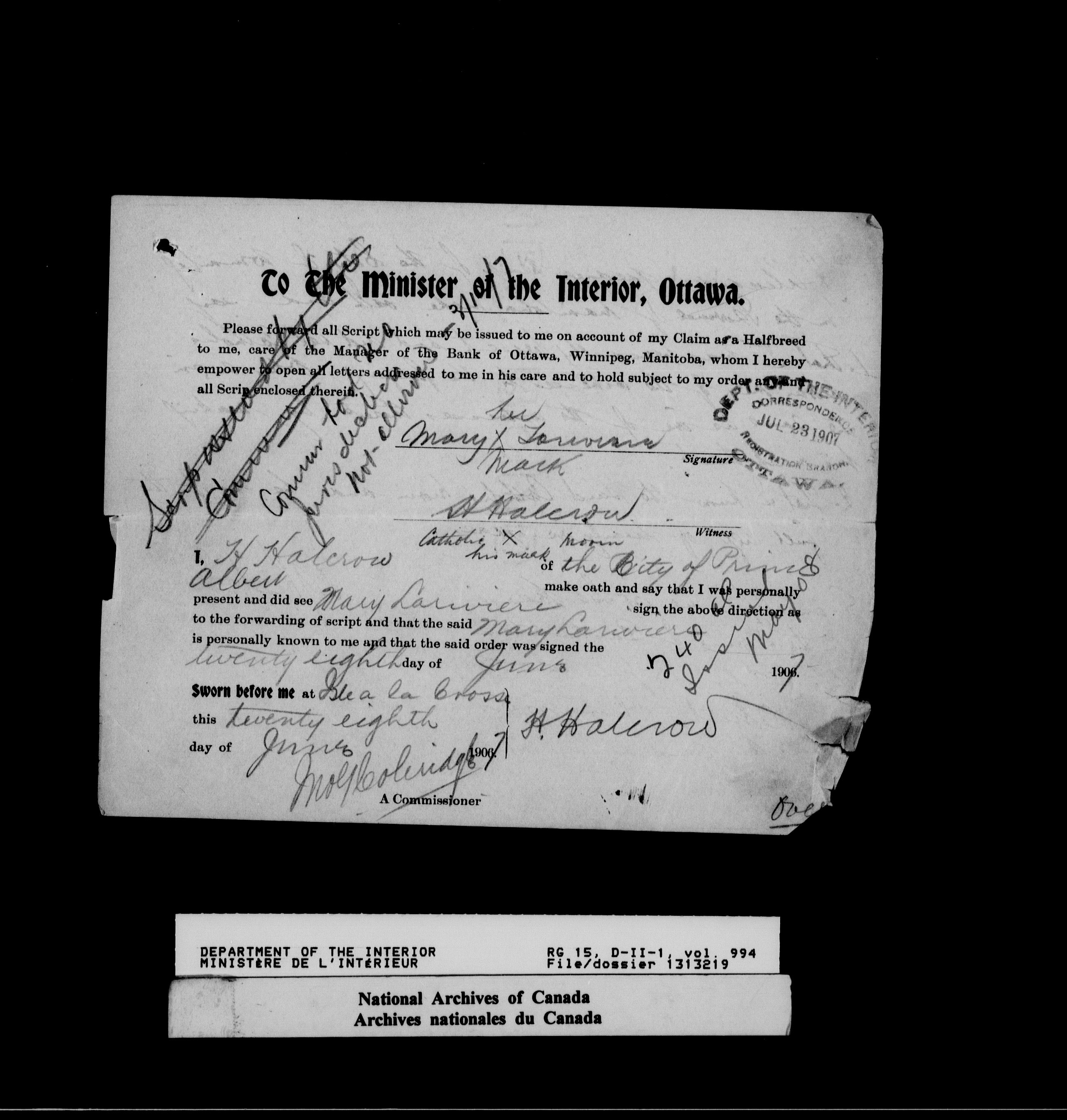 Dominion Lands Branch - Correspondence Files - 14573
