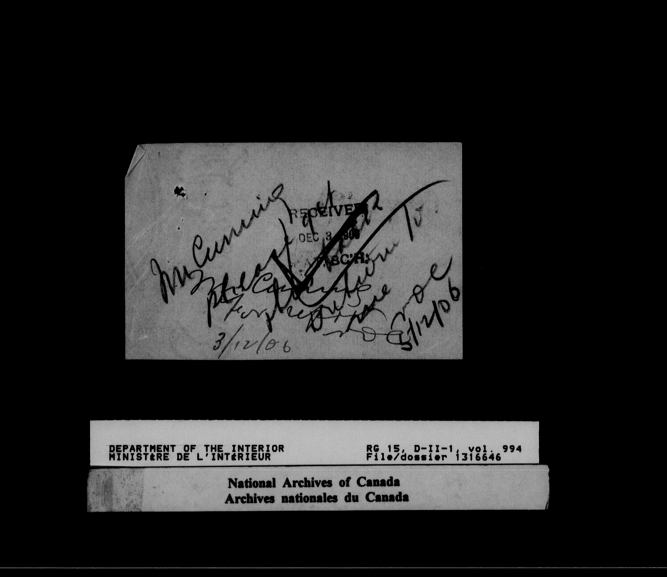 Dominion Lands Branch : Correspondence files : T-14574