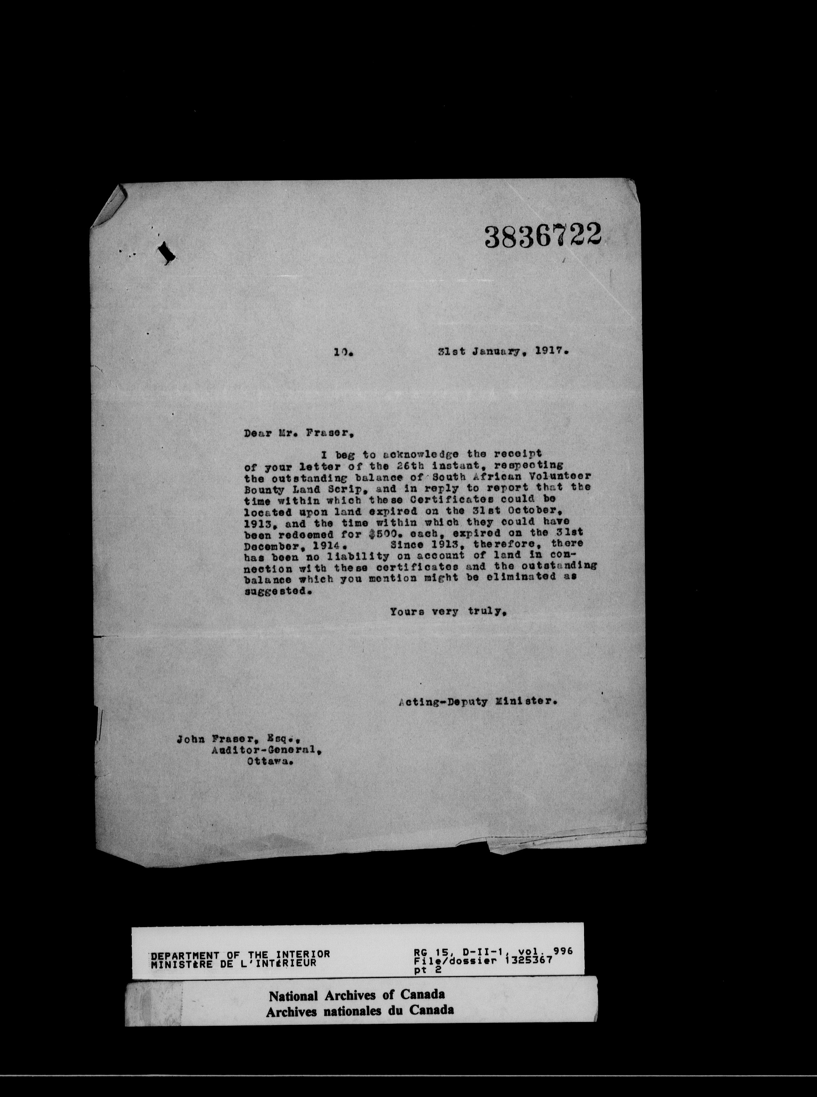 Dominion Lands Branch - Correspondence Files - 14575