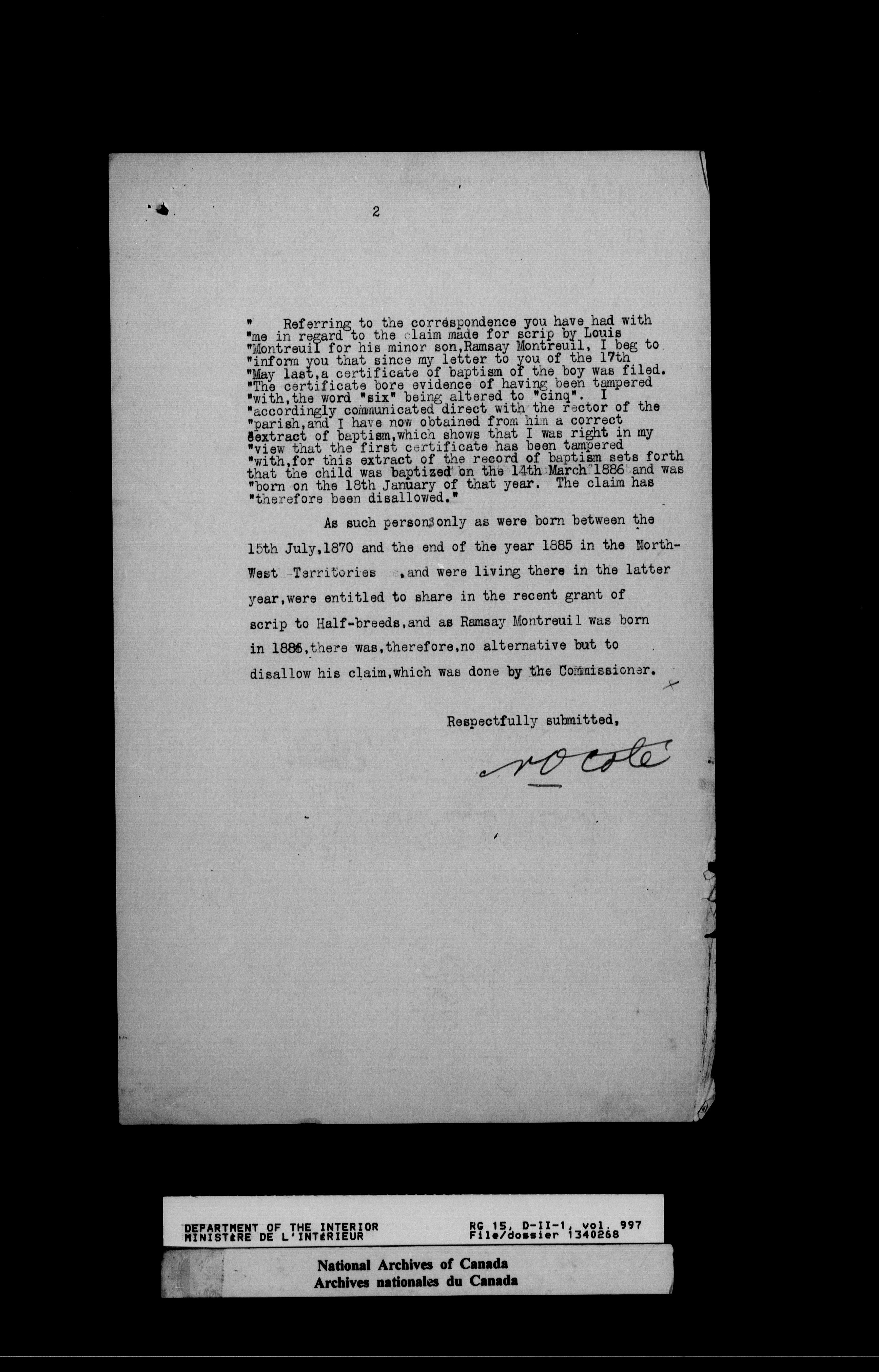 Dominion Lands Branch - Correspondence Files - 14576