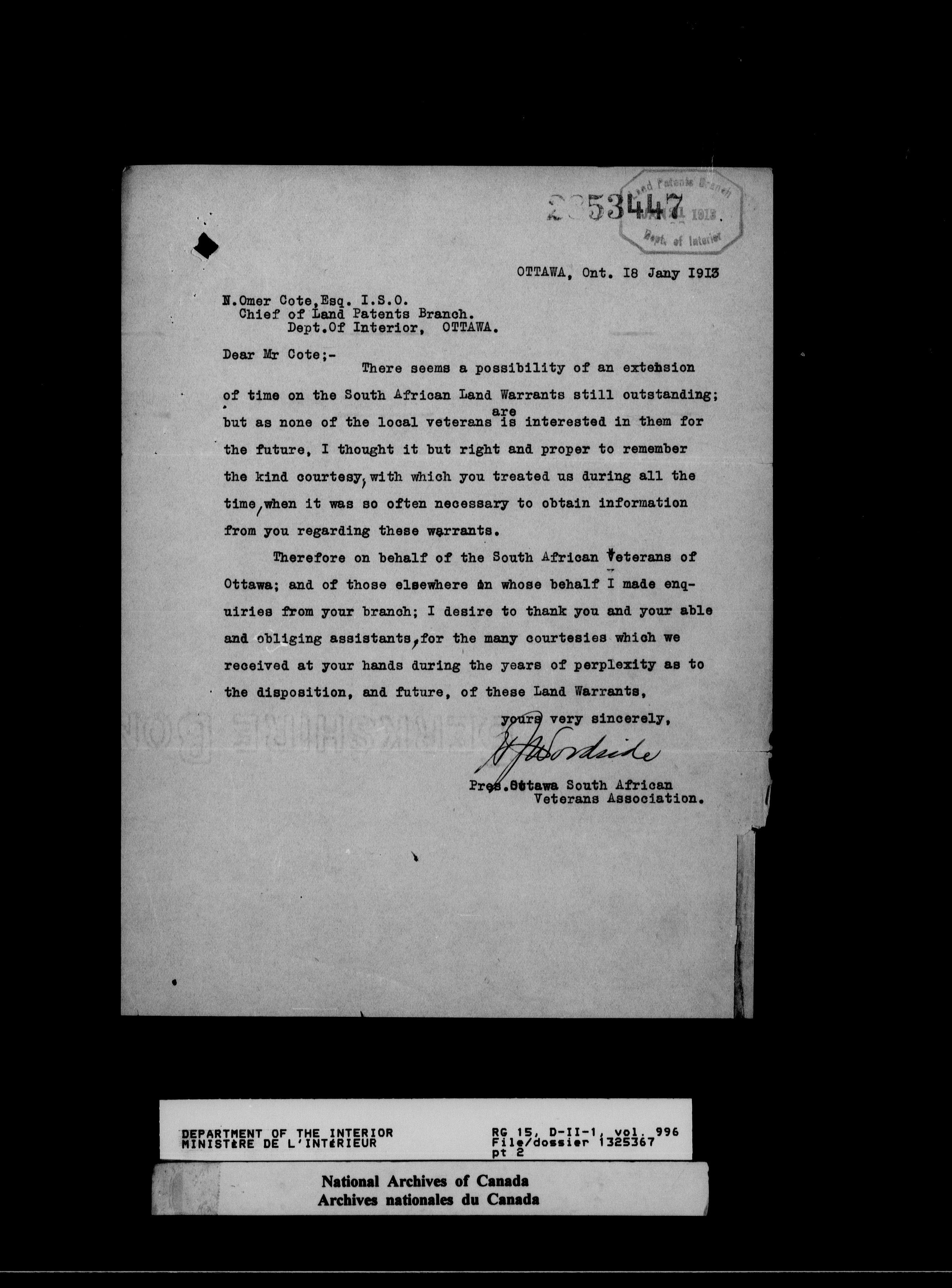 Dominion Lands Branch - Correspondence Files - 14576