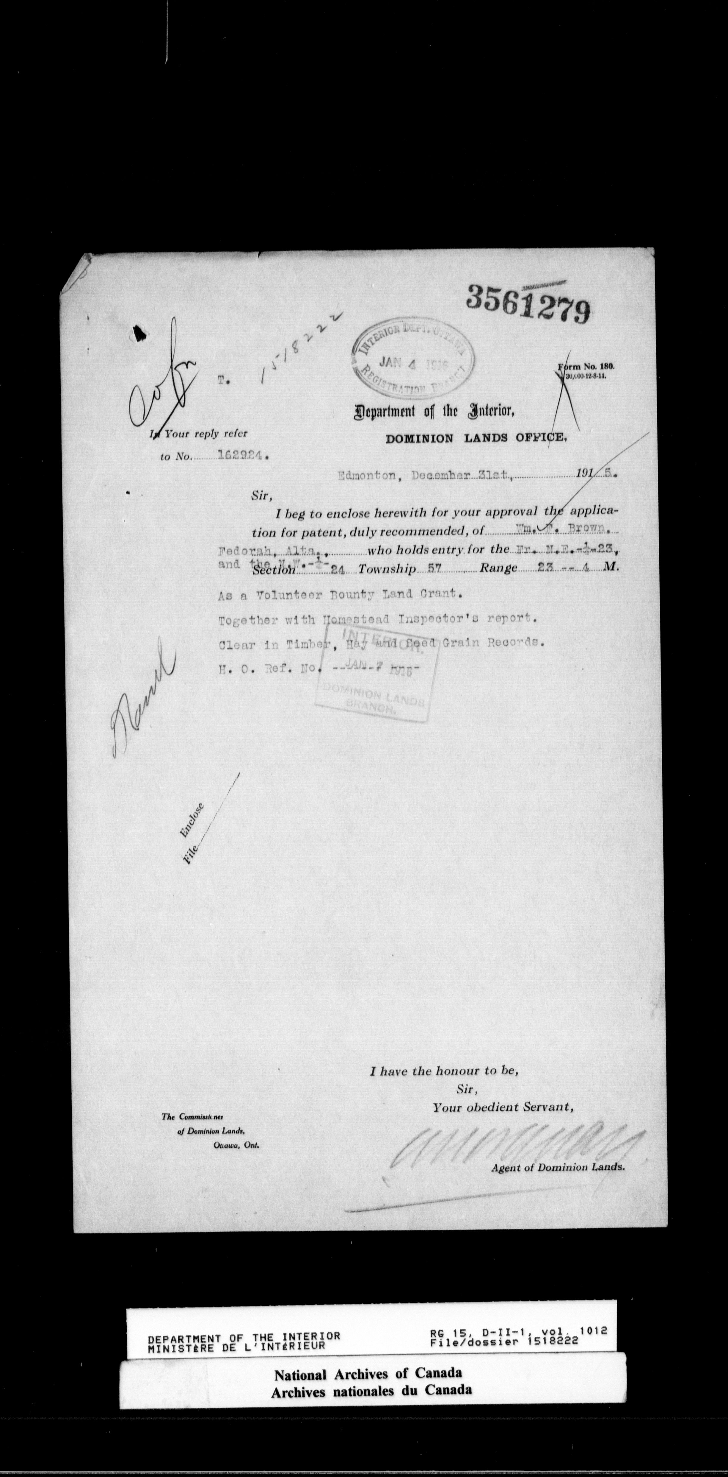 Dominion Lands Branch - Correspondence Files - 14588