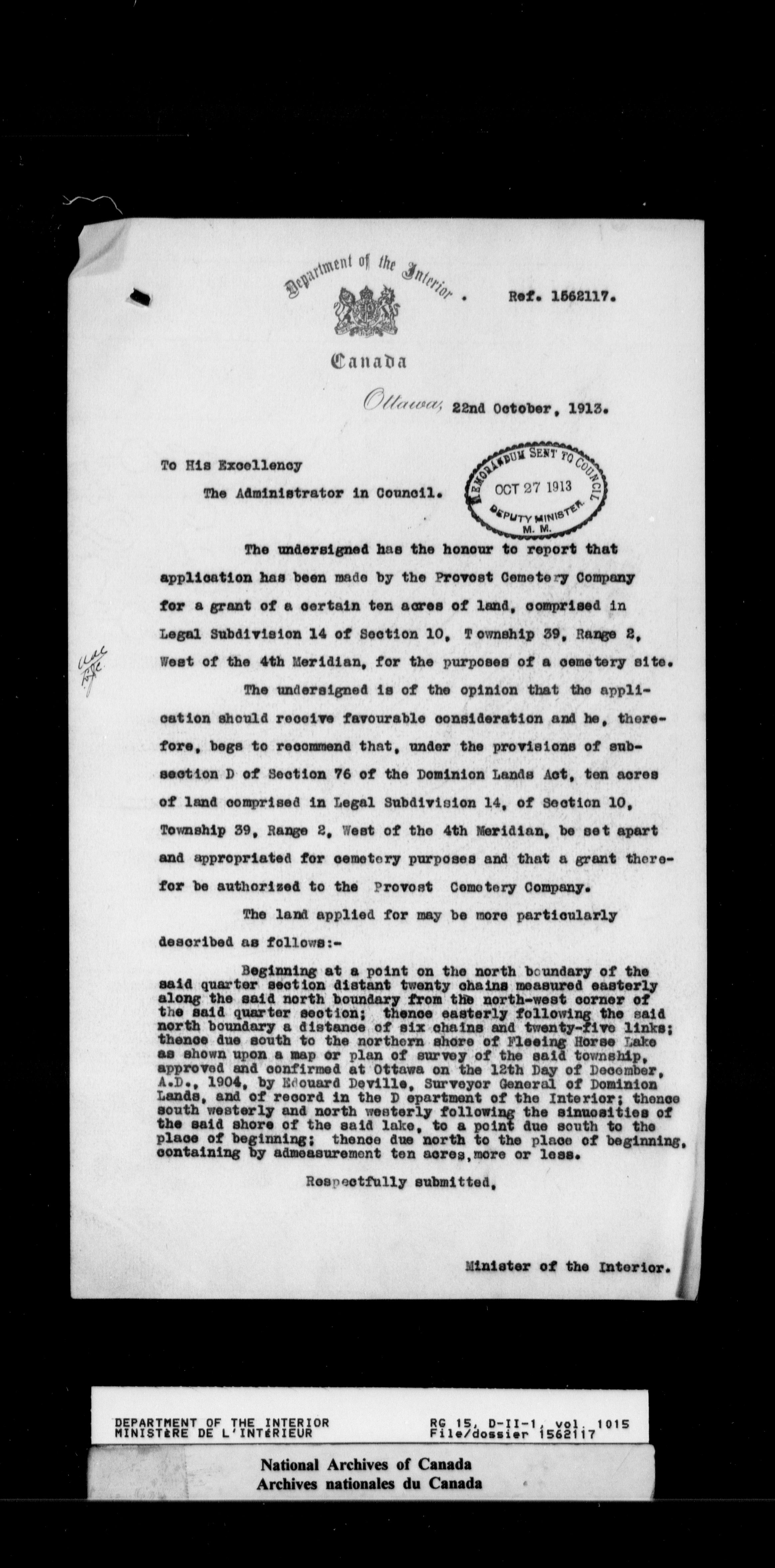 Dominion Lands Branch - Correspondence Files - 14591