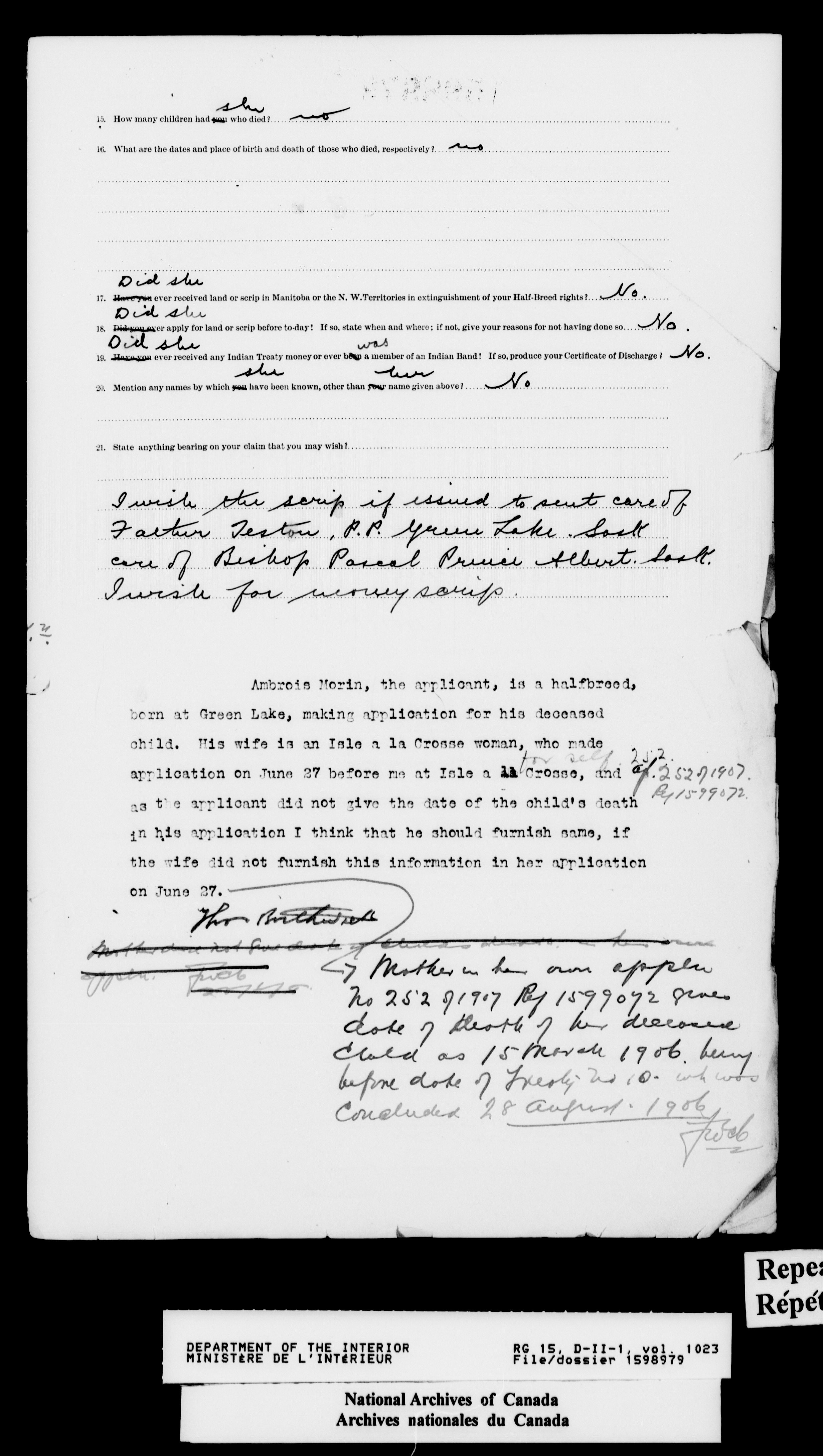 Dominion Lands Branch : Correspondence files - 14600