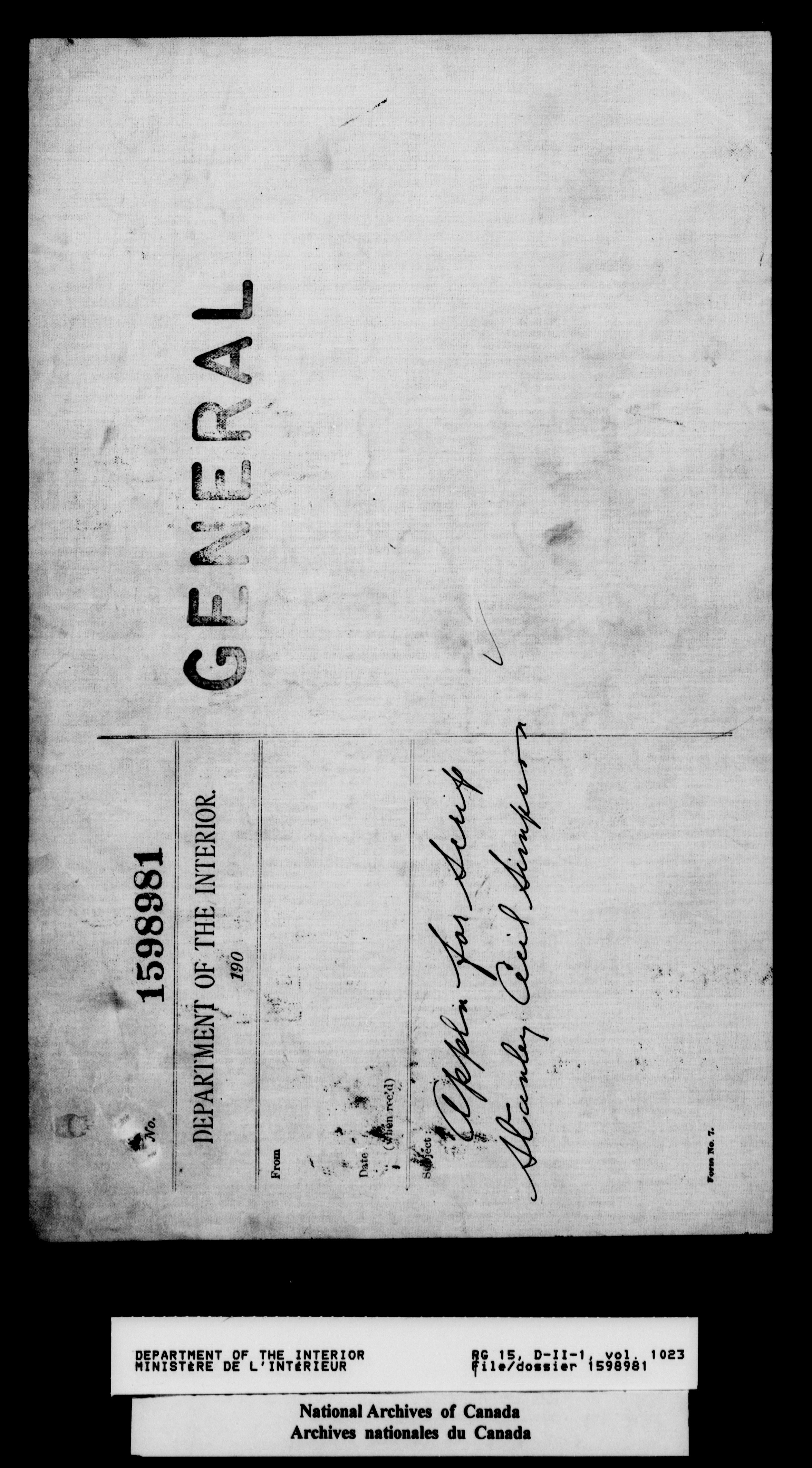 Dominion Lands Branch : Correspondence files - 14600
