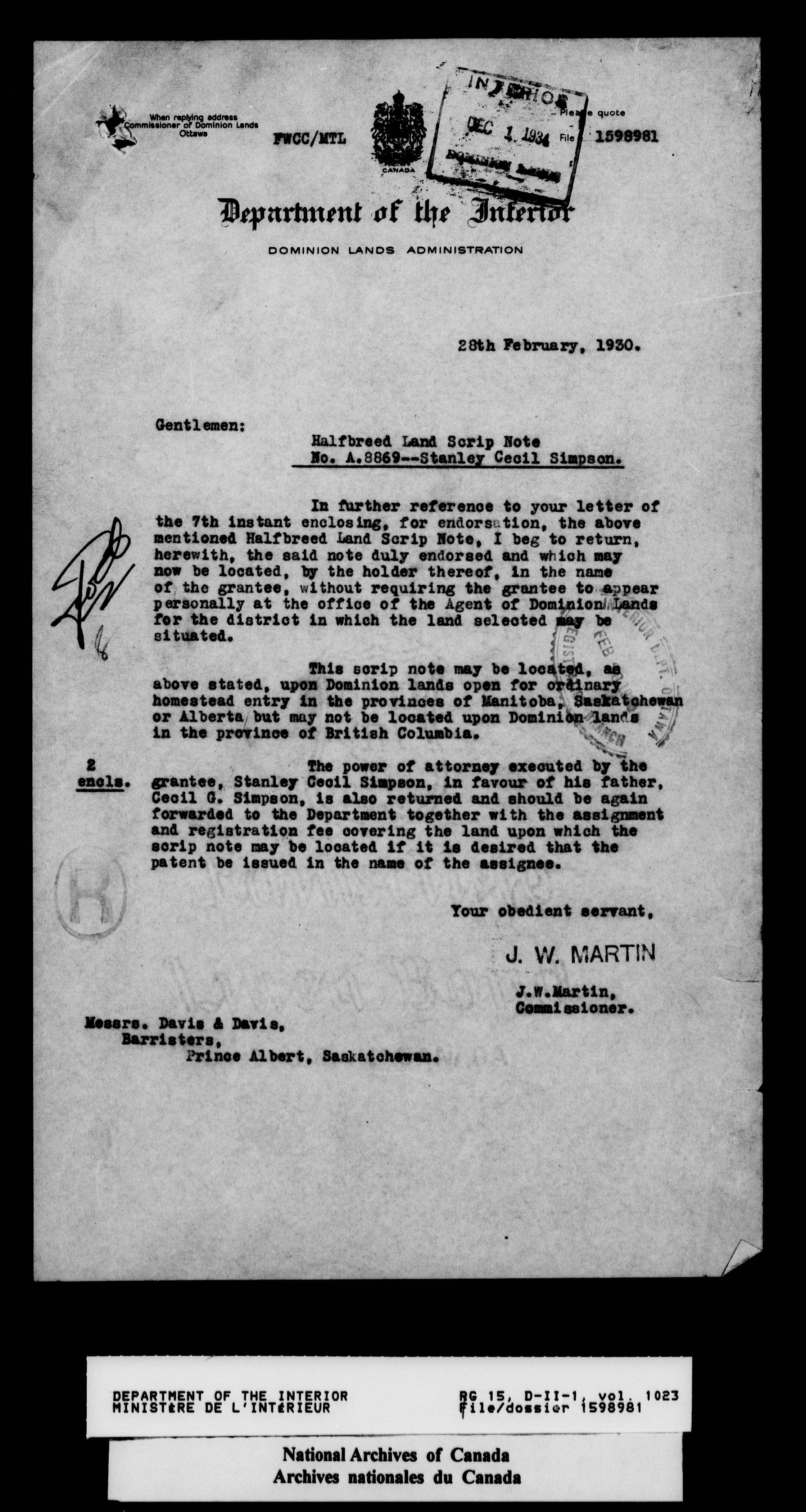 Dominion Lands Branch : Correspondence files - 14600