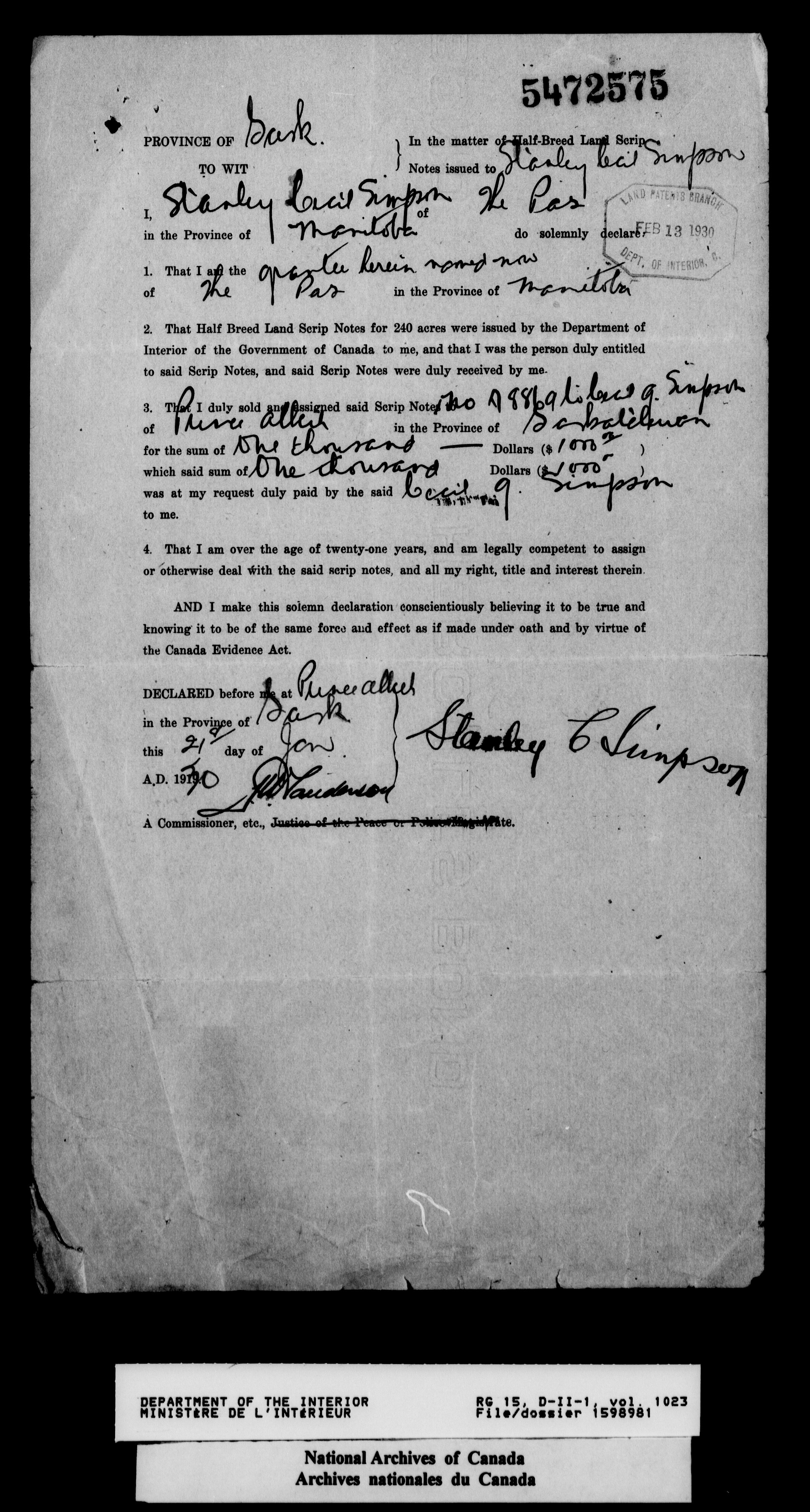 Dominion Lands Branch : Correspondence files - 14600
