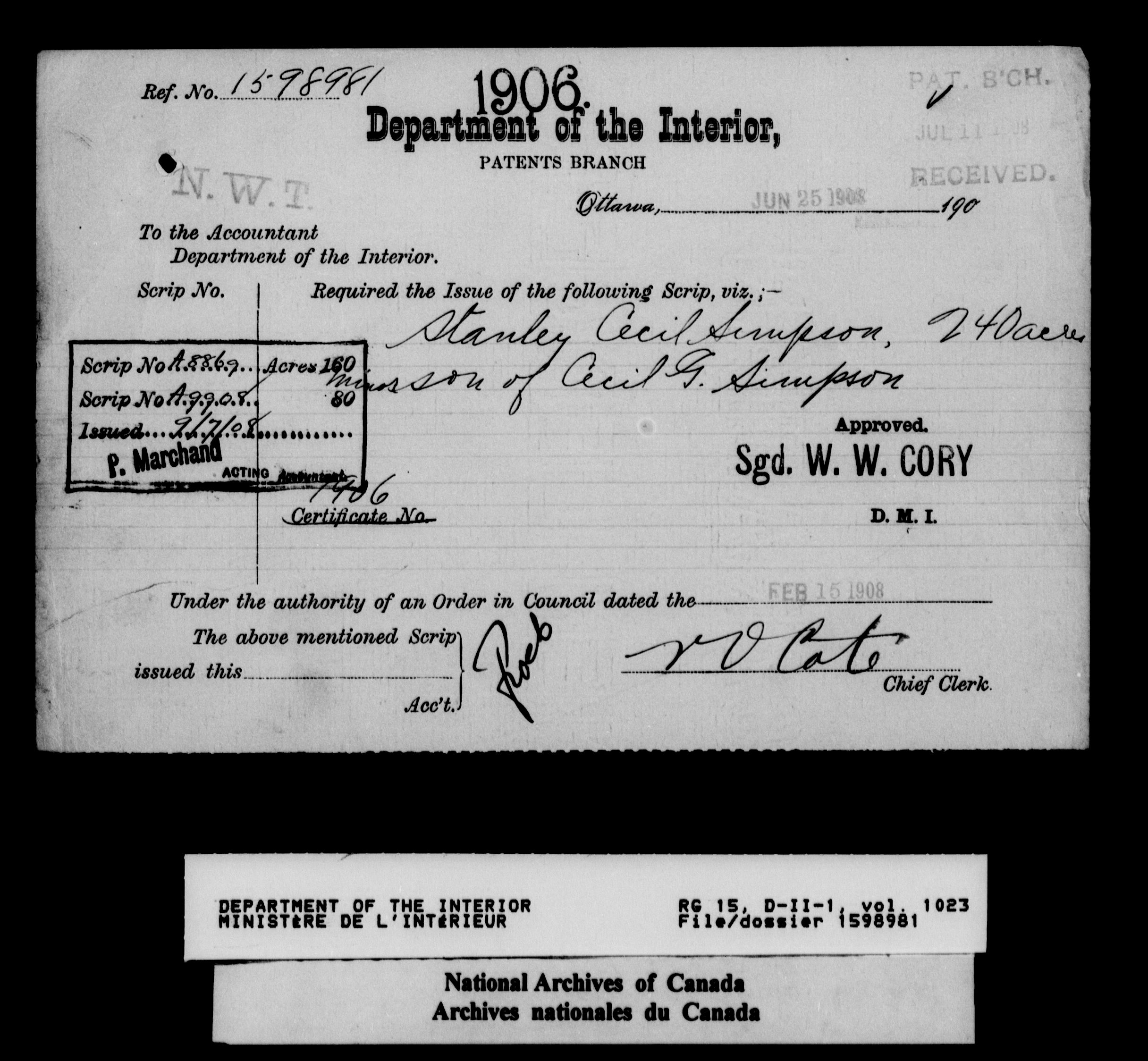 Dominion Lands Branch : Correspondence files - 14600